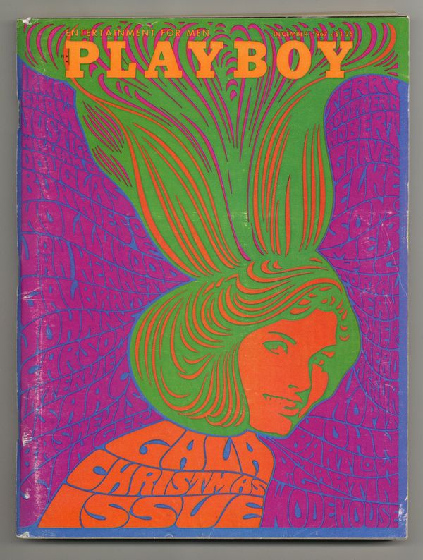 Published Dec 1967 by HMH Publishing Co..$28.00The world's longest running men's magazine, featuring advice columns, pictorials, illustrations and humor. In this gala Christmas issue: Playbill; Dear Playboy; Playboy After Hours; The Playboy Advisor; Playboy's International Datebook - travel by Patrick Chase; The Playboy Forum; Playboy Interview: Johnny Carson - candid conversation; The Mannichon Solution - fiction by Irwin Shaw; Bodies Politic - pictorial by Eugenio Hirsch; A Good Cigar Is a Smoke - fiction by P.G. Wodehouse; Far-Flung Fling - food and drink by Thomas Mario; Art Nouveau Erotica - pictorial; Resolving Our Vietnam Problem - opinion by John Kenneth Galbraith; Playboy's Christmas Cards - verse by Judith Wax; The UFO Gap - article by J. Allen Hynek; Pardon Me, Sir, But Is My Eye Hurting Your Elbow - three plays: Plums and Prunes by Terry Southern, An Incident in the Park by Arthur Kopit, Juan Feldman by Jack Richardson; Love and Hate in Rent-A-Car Land - humor by Harold Greenwald; Developing Playmate - Playboy's Playmate of the Month; Playboy's Party Jokes - humor; The Criminal Mentality - article by John Bartlow Martin; The Wicked Dreams of Elke Sommer - pictorial; Reincarnation - article by Robert Graves; Return of the Smiling Wimpy Doll - humor by Jean Shepherd; The Lecture - fiction by Isaac Bashevis Singer; Bopper Brigade - satire by Jack Newfield and Howard Smith; The Attack on Privacy - article by Justice William O. Douglas; Bunnies of Hollywood - pictorial essay; Why Napoleon Erected the Obelisk - ribald classic; Symbolic Sex - humor by Don Addis; Dance with a Stranger - fiction by Jacob Brackman; Stellar Attractions - gifts; On the Scene - personalities; and Little Annie Fanny - satire by Harvey Kirtzman and Will Elder. 8 1/2-in. x 11-in., PC/PB&W. Mature Readers Cover price $0.75.