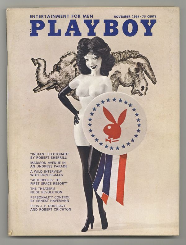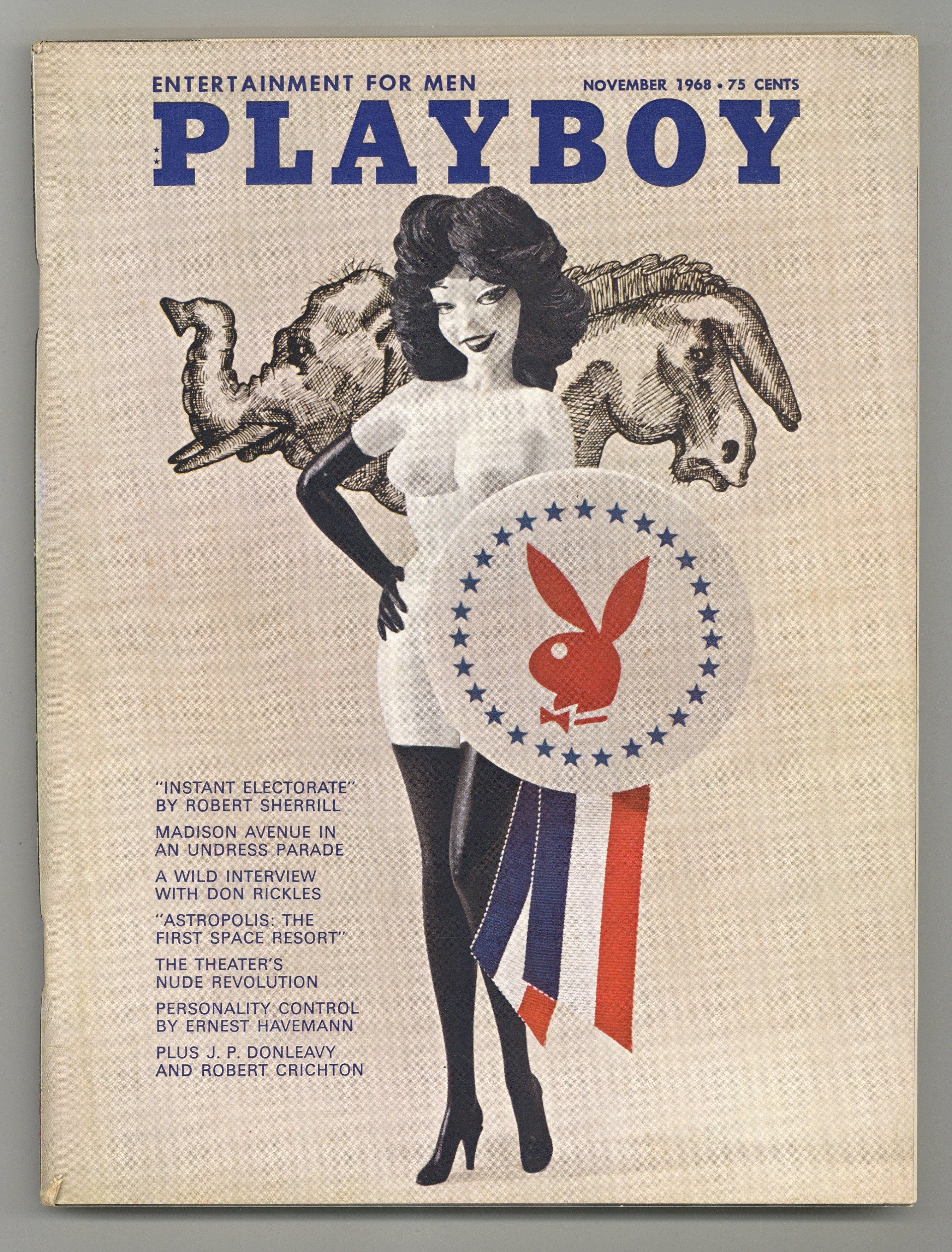Published Nov 1968 by HMH Publishing Co..$19.50The world's longest running men's magazine, featuring advice columns, pictorials, illustrations and humor. In this issue: Playbill; Dear Playboy; Playboy After Hours; The Playboy Advisor; The Playboy Forum; Playboy Interview: Don Rickles - candid conversation; A Fair Festivity - fiction by J.P. Donleavy; Astropolis: The First Space Resort - future living by Krafft A. Ehricke; Theater of the Nude - pictorial essay by Howard Junker; Skiing: From A to V - travel by Len Deighton; Colorless on Limestone Caverns - fiction by Allan Seager; Personality By Prescription - article by Ernest Havemann; Great Greatcoat - attire by Robert L. Green; How Does That Make You Feel? - fiction by Jeffery Hudson; Like Young - Playboy's Playmate of the Month; Playboy's Party Jokes - humor; The Real Secret of Santa Vittoria - article by Robert Crichton; Adult Toys - gifts; The Legacy - fiction by Michael Laurence; Mad Ave Unclad - photo satire; The Bell Witch - ribald classic; Riding with Bonnie and Clyde - memoir by W.D. Jones; Scrutable Japanese Fare - food by Thomas Mario; Instant Electorate - article by Robert Sherrill; On the Scene - personalities; and The Decision - satire by Jules Feiffer. 8 1/2-in. x 11-in., PC/PB&W. Mature Readers Cover price $0.75.