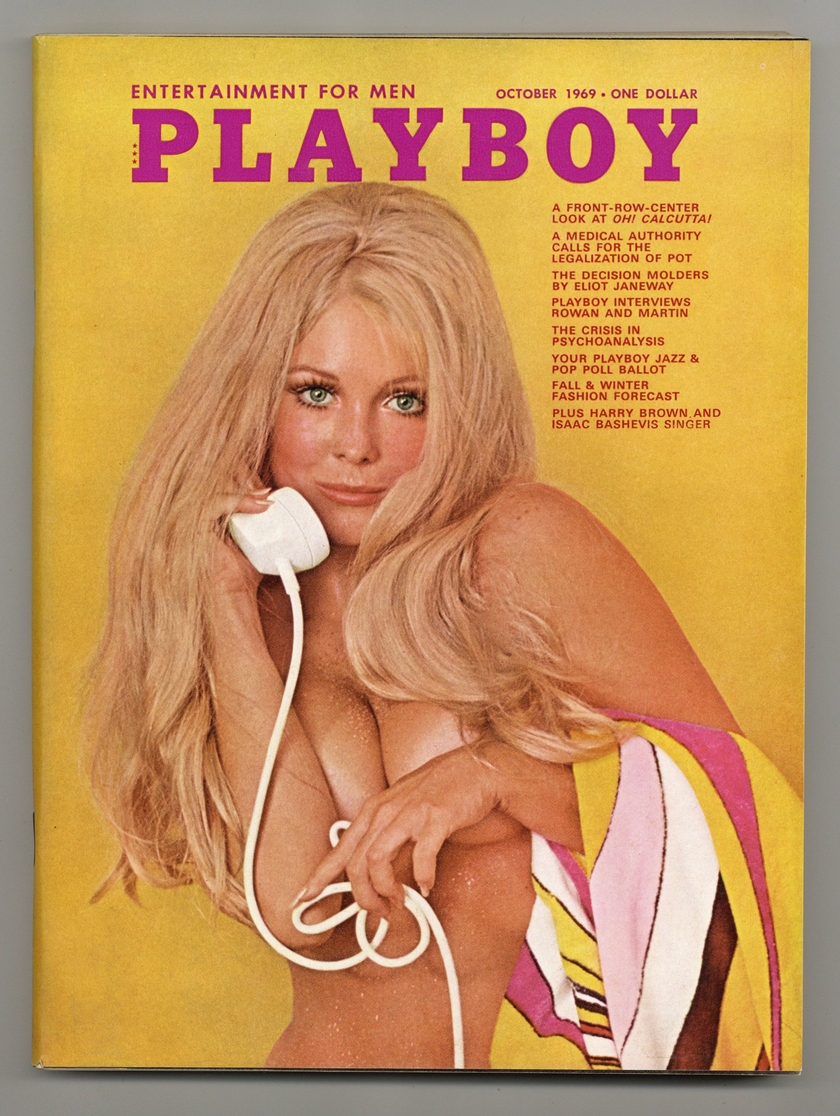 Published Oct 1969 by HMH Publishing Co..$32.00The world's longest running men's magazine, featuring advice columns, pictorials, illustrations and humor. In this issue: A Front-Row-Center Look at Oh! Calcutta!; A Medical Authority Calls for the Legalization of Pot; The Decision Molders by Eliot Janeway; Playboy Interviews Rowan and Martin; The Crisis in Psychoanalysis; Your Playboy Jazz & Pop Poll Ballot; and Fall & Winter Fashion Forecast. Plus: Harry Brown and Isaac Bashevis Singer. 8 1/2-in. x 11-in., PC/PB&W. Mature Readers Cover price $1.00.