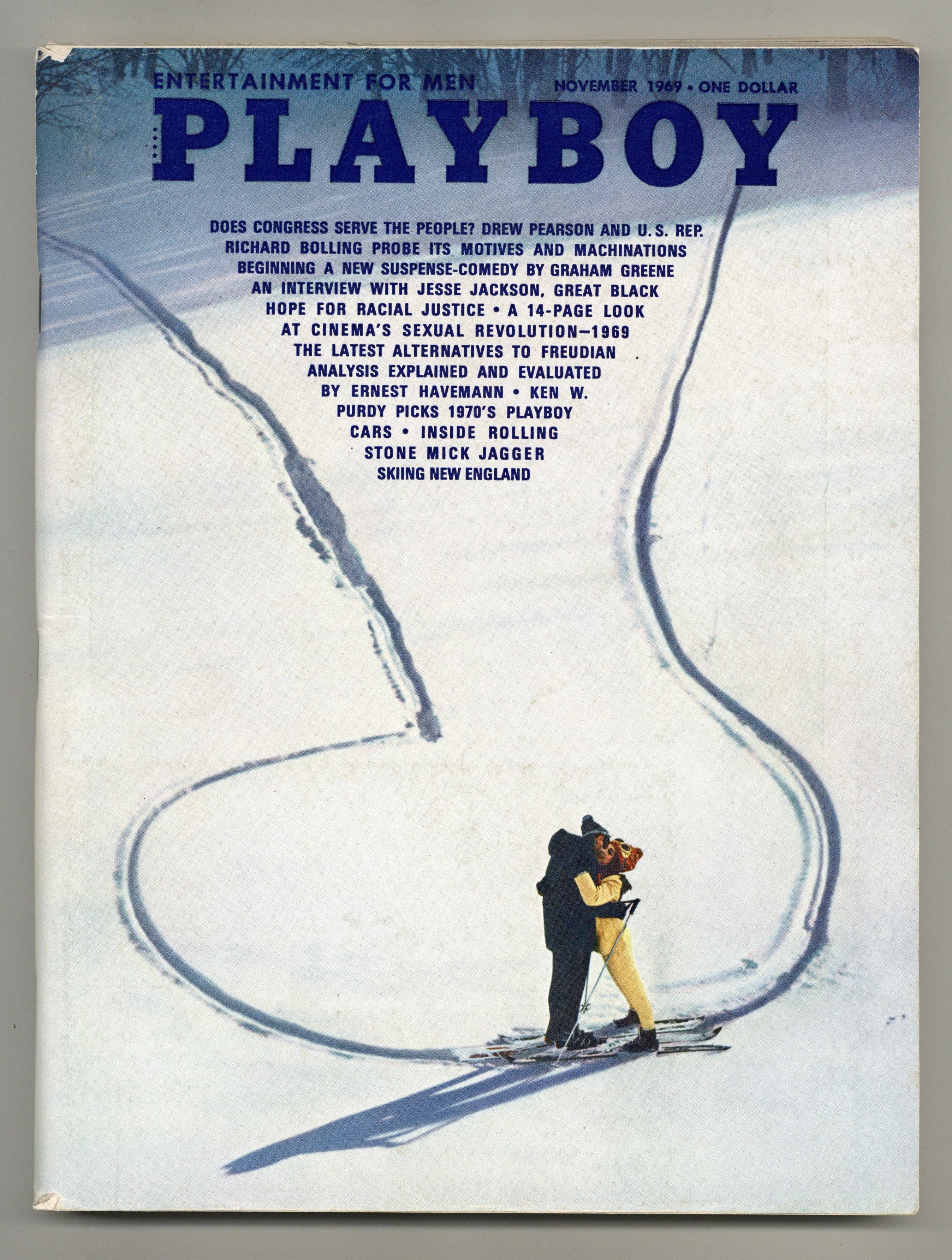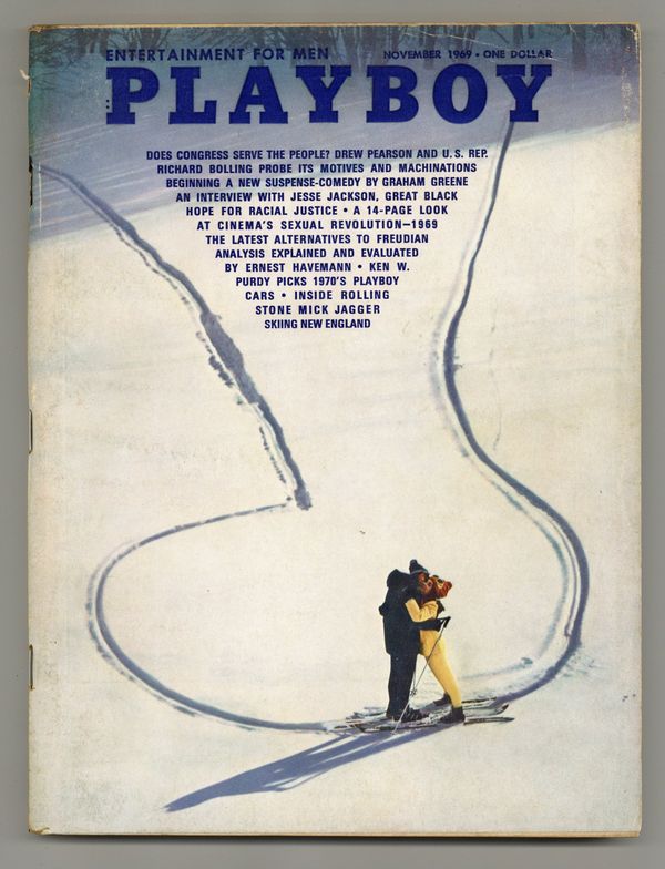Published Nov 1969 by HMH Publishing Co..$35.00The world's longest running men's magazine, featuring advice columns, pictorials, illustrations and humor. In this issue: Does Congress Serve the People? Drew Pearson and U.S. Rep. Richard Bolling Probe Its Motives and Machinations. Plus: Beginning a New Suspense-Comedy by Graham Greene; An Interview with Jesse Jackson, Great Black Hope for Racial Justice; A 14-Page Look at Cinema's Sexual Revolution - 1969; The Latest Alternatives to Freudian Analysis Explained and Evaluated by Ernest Havemann; Ken W. Purdy Picks 1970's Playboy Cars; Inside Rolling Stone Mick Jagger; and Skiing New England. 8 1/2-in. x 11-in., PC/PB&W. Mature Readers Cover price $1.00.