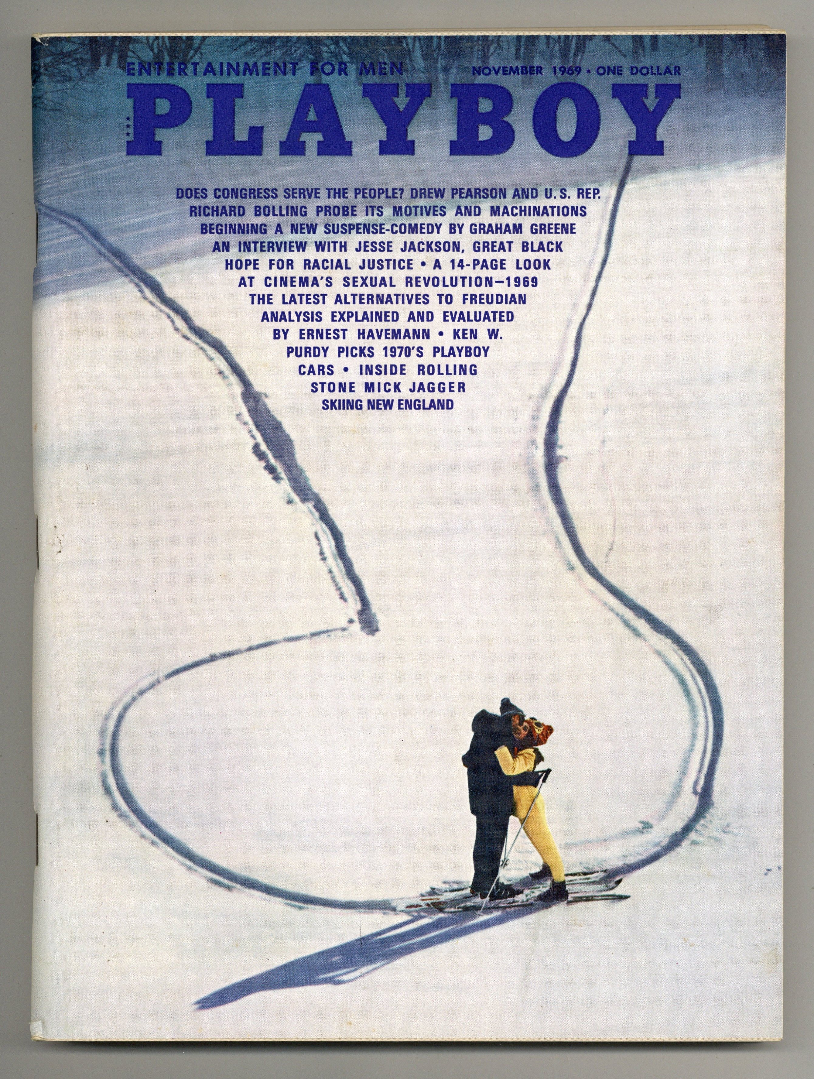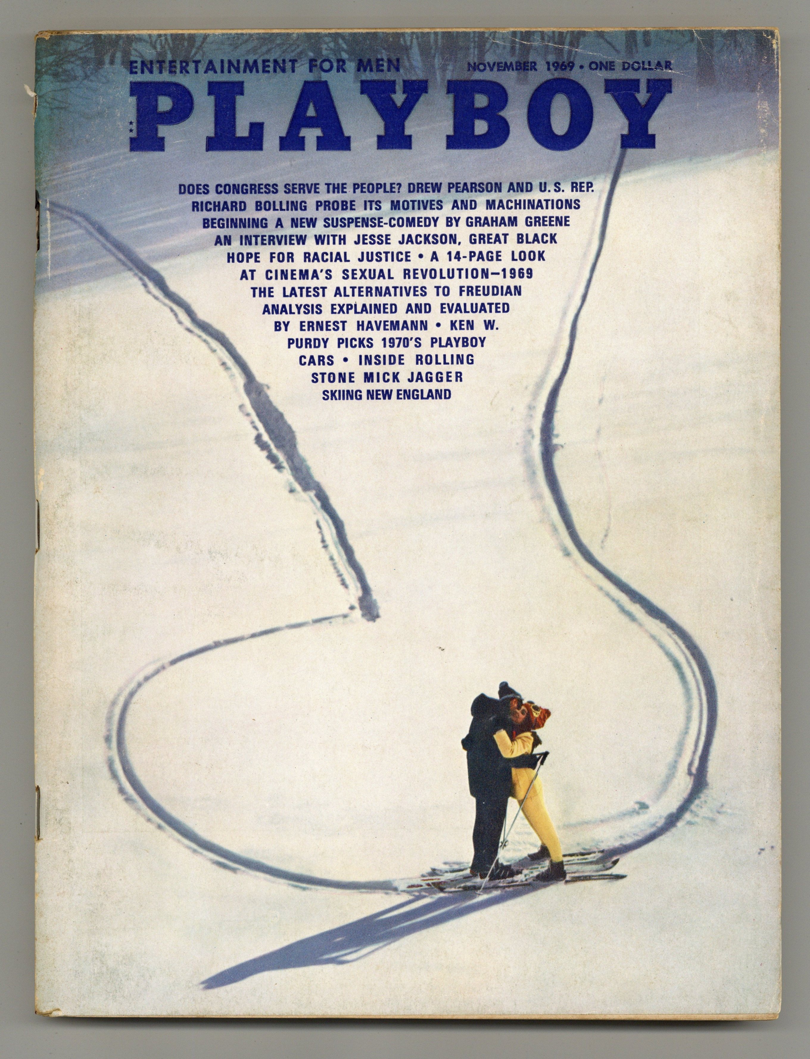 Published Nov 1969 by HMH Publishing Co..$25.00The world's longest running men's magazine, featuring advice columns, pictorials, illustrations and humor. In this issue: Does Congress Serve the People? Drew Pearson and U.S. Rep. Richard Bolling Probe Its Motives and Machinations. Plus: Beginning a New Suspense-Comedy by Graham Greene; An Interview with Jesse Jackson, Great Black Hope for Racial Justice; A 14-Page Look at Cinema's Sexual Revolution - 1969; The Latest Alternatives to Freudian Analysis Explained and Evaluated by Ernest Havemann; Ken W. Purdy Picks 1970's Playboy Cars; Inside Rolling Stone Mick Jagger; and Skiing New England. 8 1/2-in. x 11-in., PC/PB&W. Mature Readers Cover price $1.00.
