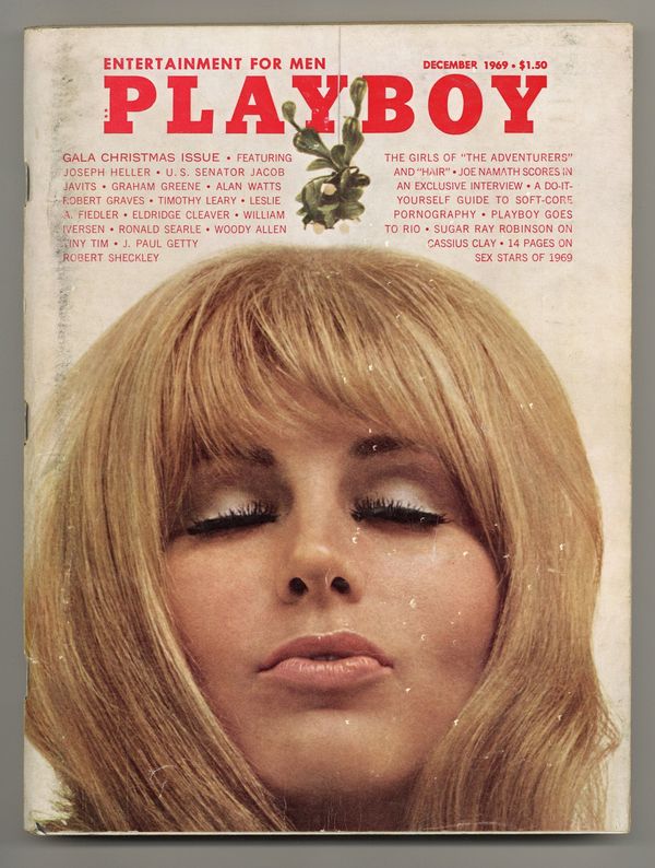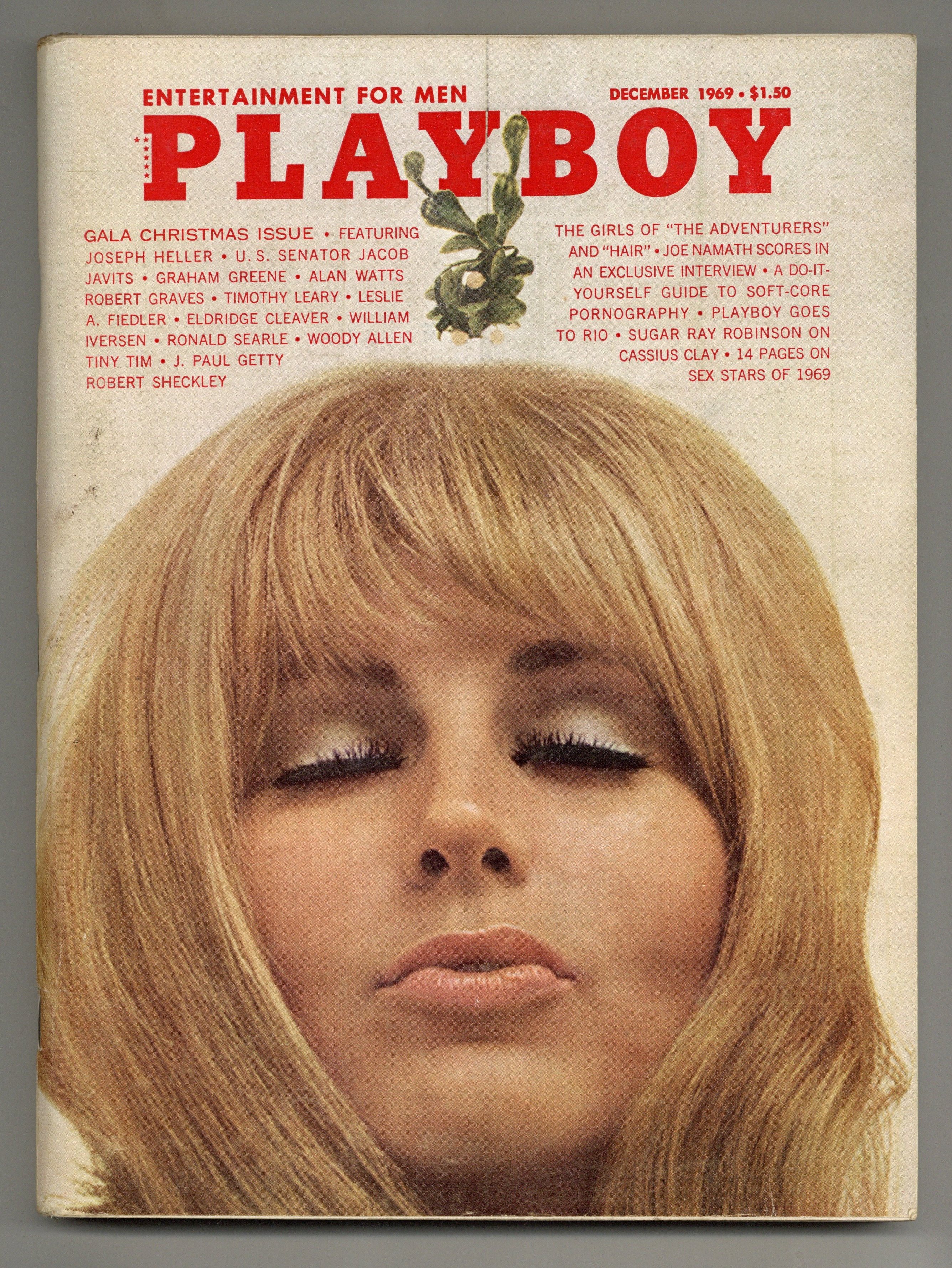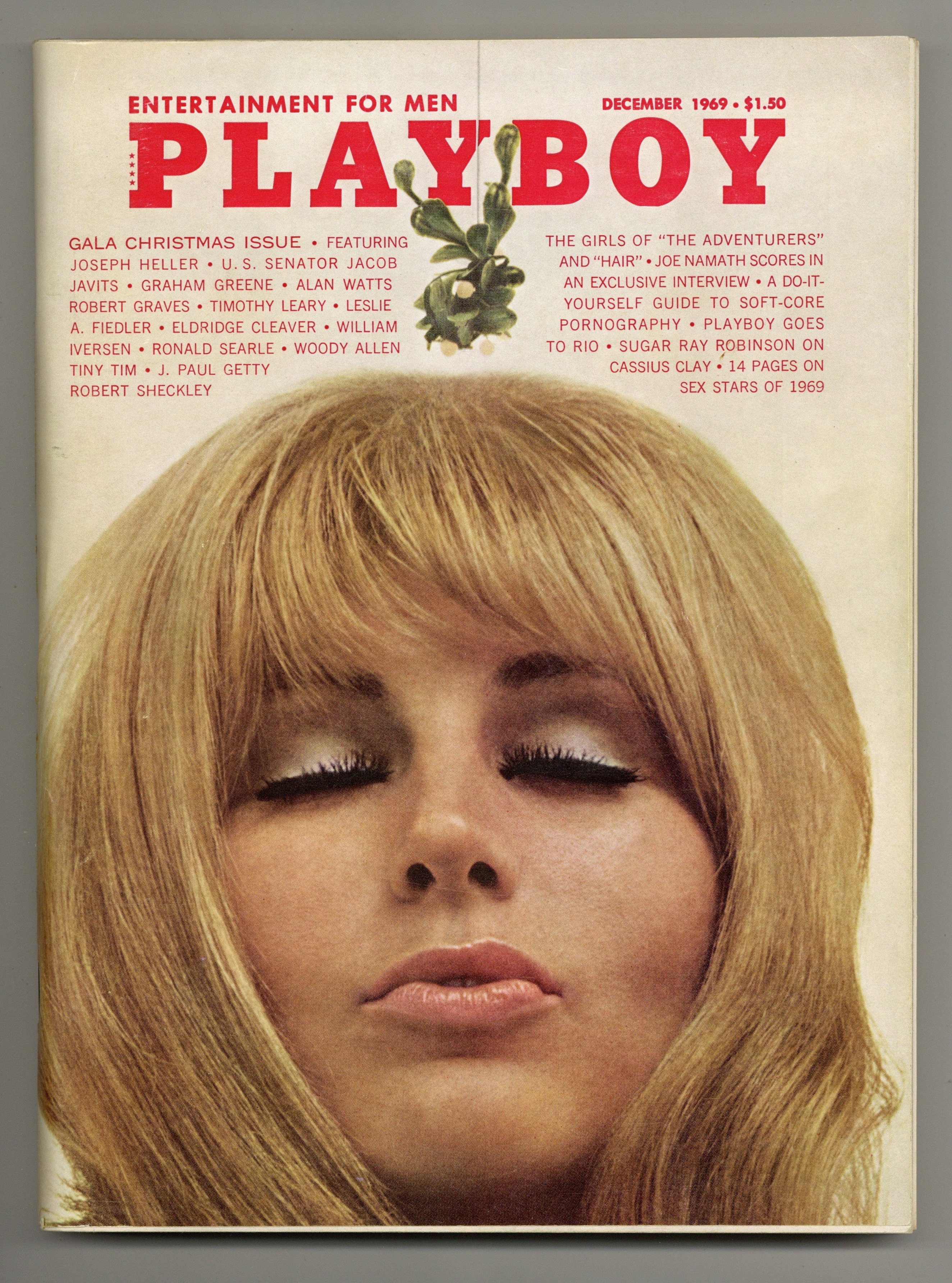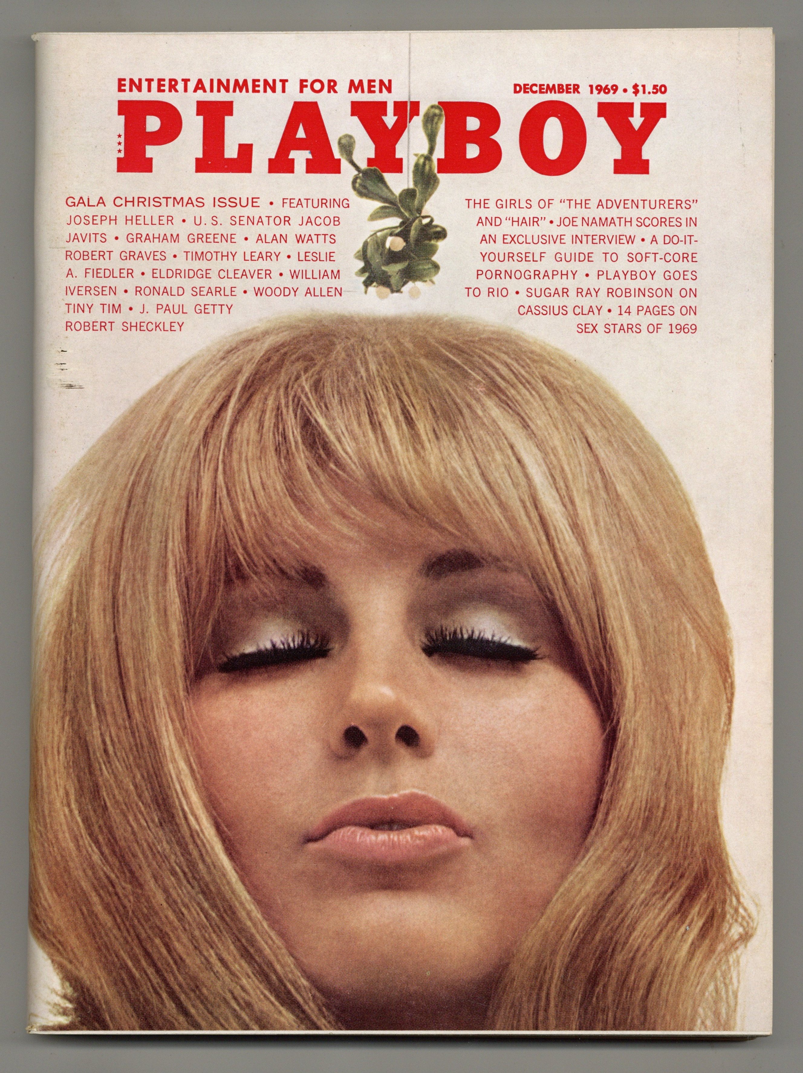 Published Dec 1969 by HMH Publishing Co..$28.00The world's longest running men's magazine, featuring advice columns, pictorials, illustrations and humor. In this gala Christmas issue: The Girls of "The Adventurers" and "Hair"; Joe Namath Scores in an Exclusive Interview; A Do-It-Yourself Guide to Soft-Core Pornography; Playboy Goes to Rio; Sugar Ray Robinson on Cassius Clay; and 14 Pages on Sex Stars of 1959. Plus: Joseph Heller, U.S. Senator Jacob Javits, Graham Greene, Alan Watts, Robert Graves, Timothy Leary, Leslie A. Fiedler, Eldridge Cleaver, William Iversen, Ronald Searle, Woody Allen, Tiny Tim, J. Paul Getty and Robert Sheckley. 8 1/2-in. x 11-in., PC/PB&W. Mature Readers Cover price $1.50.