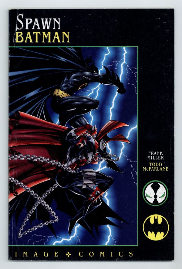 $4.80NEWSSTAND EDITION Cover pencils by Todd McFarlane, inks by Kiko Taganashi. Prestige format one-shot pitting Bob Kane's classic creation Batman against Todd McFarlane's Spawn (a product of Image Comics). It is a companion piece to Frank Miller's The Dark Knight Returns. Untitled story, script by Frank Miller, art by Todd McFarlane; Batman travels to New York City where he is duped by a twisted humanitarian into battling Spawn. Spawn illustration by Greg Capullo. Batman/Spawn illustration by Todd McFarlane and Frank Miller. Dedication of the book to Jack Kirby, includes photograph of Kirby. Short biographical paragraphs and photographs on Frank Miller and Todd McFarlane on the back cover. 60 pgs., full color. Cover price $3.95.
