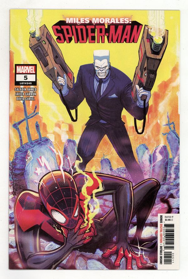 Tags: Marvel Legacy Numbering: Spider-Man (Ultimate) (part 245), Spider-Man$16.00Written by Saladin Ahmed. Art by Javi Garron. Cover by Marco D'Alfonso. Tombstone is not happy with Miles taking out his weapons supplier and is taking drastic measures. He's a big believer in the adage, 'If you want a job done, you have to do it yourself.' All the while, Miles is still juggling school, super-heroing and his love life. Wait a minute, WHAT love life?! 28 pages, full color. Rated T Cover price $3.99.