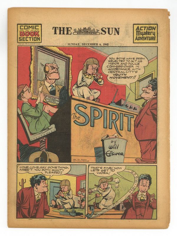 Published Dec 1942 by Promotional.$68.00Spirit Weekly Newspaper Comic Insert. 7-1/2 x 10 inches, 16 pages, full color, all newsprint with no slick cover. Eisner/Fine/Quality staff assist on Spirit.