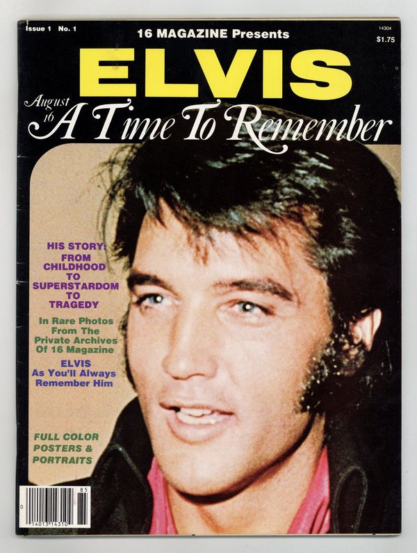 In this issue: His story from childhood to superstardom to tragedy, In rare photos from private archives of 16 magazine, Elvis as you'll always remember him. Cover price $1.75.