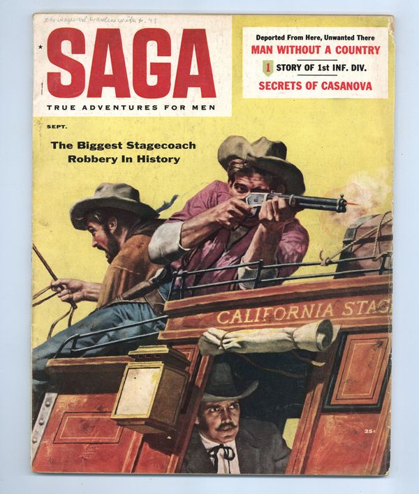 Volume 10, Issue 6 - September, 1955. Men's interest magazine focusing on Western adventure stories. 8.5" x 11", 100 pages, B&W. Cover price $0.25.