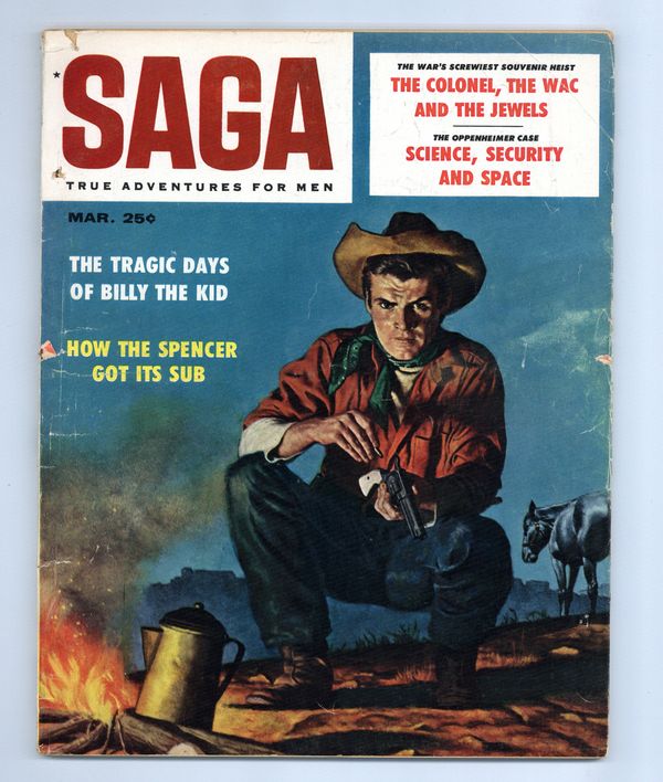 Published Mar 1958 by MacFadden Publications.$5.20Men's interest magazine focusing on Western adventure stories. 8.5" x 11", 100 pages, B&W. Cover price $0.25.