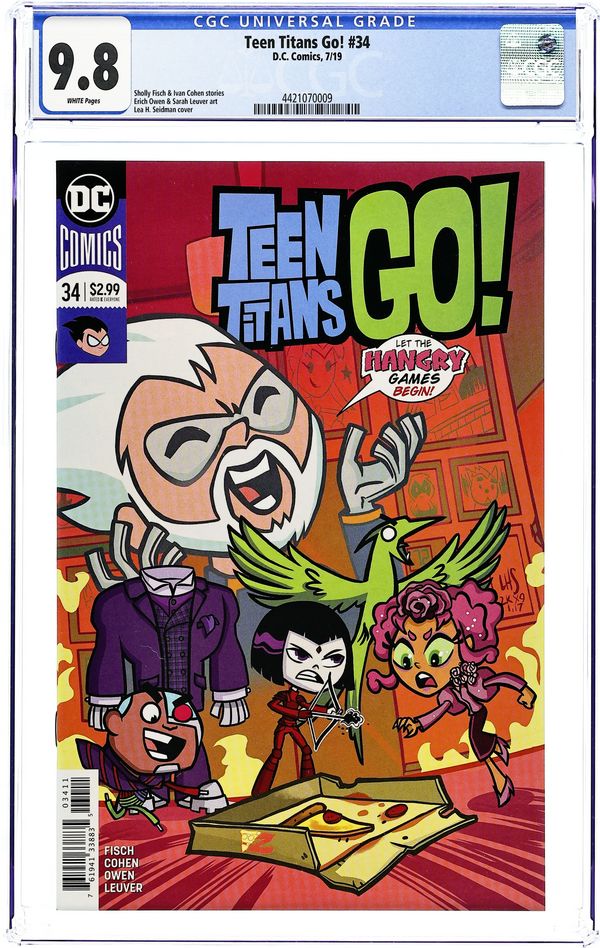 Written by Sholly Fisch and Ivan Cohen. Art by Erich Owen and Sarah Leuver. Cover by Lea Hernandez. The Titans get swept up in a 73-hour dystopian teen movie marathon, then reenact 'The Hungry Games' when they realize there's only one slice of pizza left! And when a meatball-making contest sponsored by a local Jump City joint (first prize: free heroes for life!) provokes an intense Beast Boy/Cyborg rivalry, it spells certain disaster…for our 'Meatball Heroes' and the poor restaurant. 32 pages, full color. Rated E Cover price $2.99.