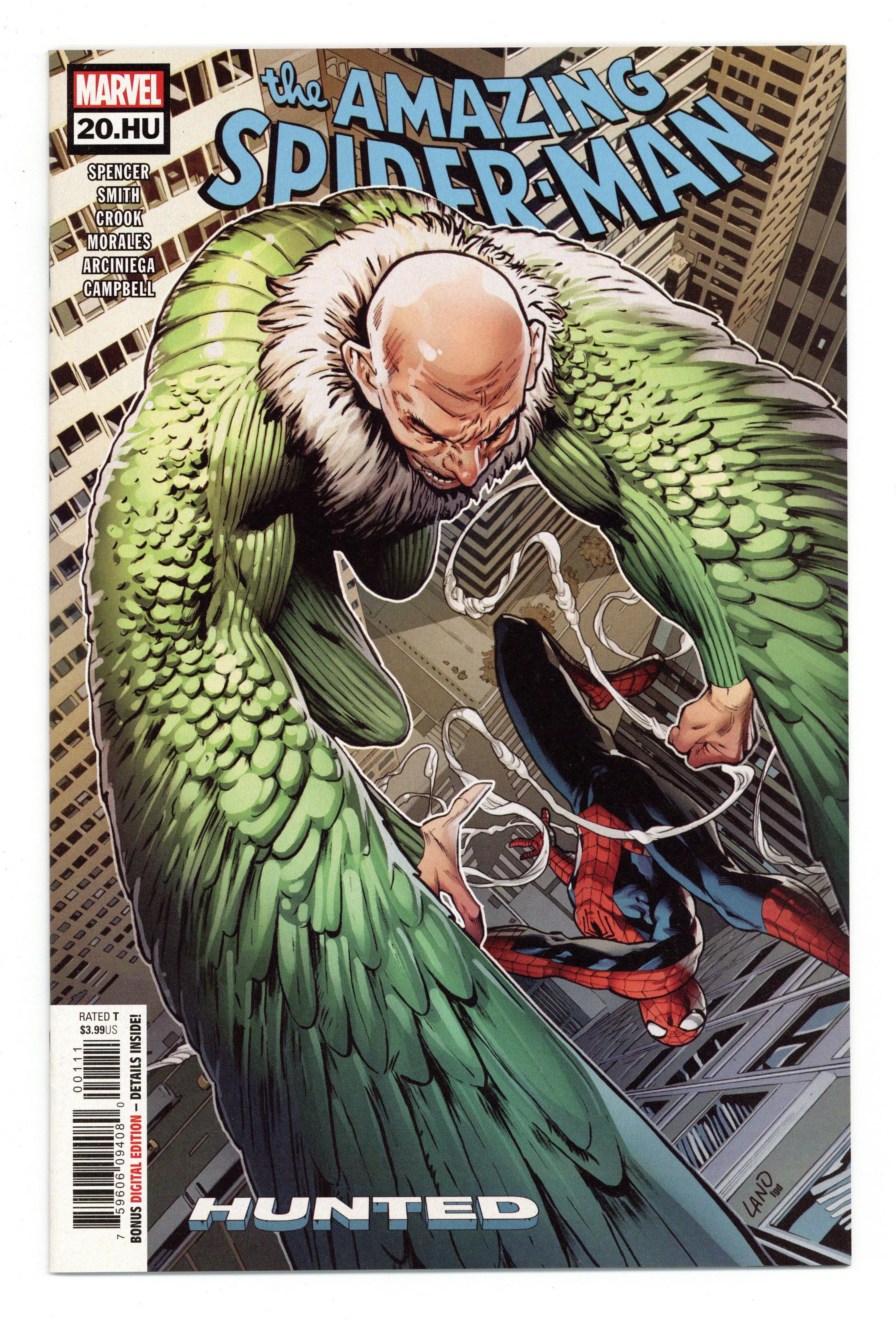Tags: Hunted (Marvel) (part 4.1), Marvel Legacy Numbering: Amazing Spider-Man (part 821), Spider-Man$7.00Written by Nick Spencer. Art by Cory Smith. Cover by Greg Land. ESSENTIAL 'HUNTED' TIE-IN! The Vulture is one of Spider-Man's oldest villains and his oldest villain… …but that doesn't make him any less dangerous. Kraven's biggest hunt has thrown everything upside down and there's plenty of carrion for the Vulture. 36 pages, full color. Rated T Cover price $3.99.