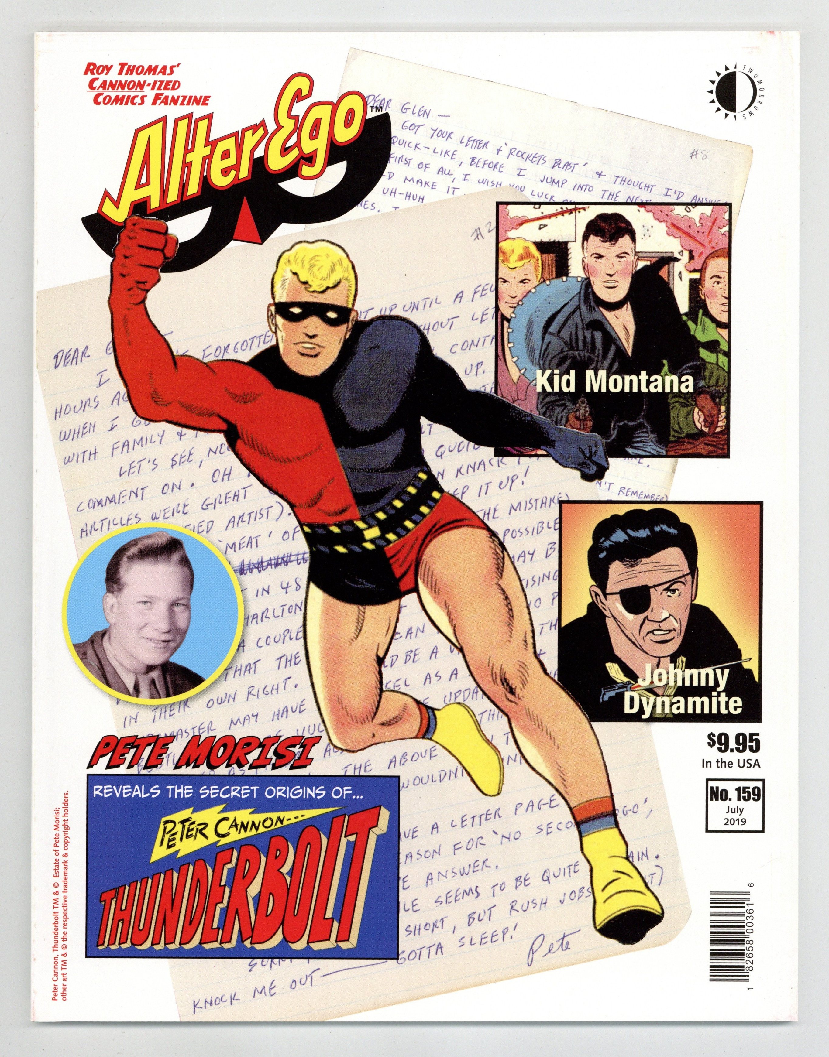Peter Cannon - Thunderbolt writer/artist Pete Morisi talks about the creative process! Plus, we uncover his vintage correspondence and secret shop-talk with comic book greats Jack Kirby, Joe Simon, Al Williamson, Charles Biro, Joe Gill, George Tuska, Rocky Mastroserio, Pat Masulli, Sal Gentile, Dick Giordano, and others! Also: John Broome's bio, FCA (Fawcett Collectors of America), Michael T. Gilbert in Mr. Monster's Comic Crypt, and Bill Schelly. Includes: Part 10 of Golden/Silver Age writer John Broome's 1998 memoir; My Day In Prison With Daredevil - Roy Thomas relates the story behind his offbeat cameo in the Marvel/Netflix series; Comic Fandom Archive: Bart Bush...Then and Now - Bill Schelly strolls down memory lane with the co-founder of Oklahoma comic fandom; Fawcett Collectors of America #218 - P.C. Hamerlinck presents Bill Schelly's 2002 interview with writing great William Woolfolk. Cover by Pete Morisi. Edited by Roy Thomas. 96 pages, full color. Cover price $9.95.