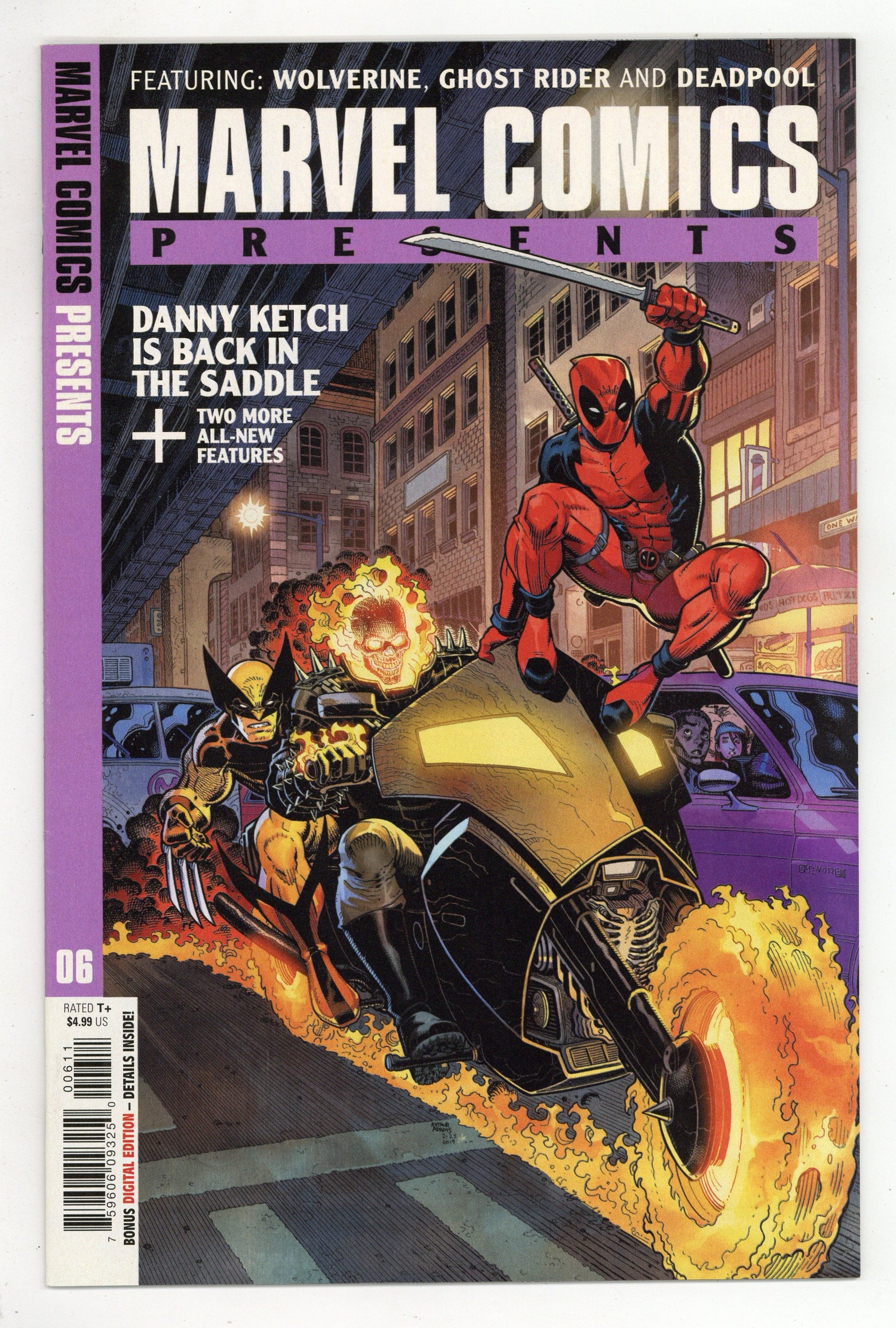1st appearance of Wolverine's daughter Rien. Written by Charles Soule, Tim Seely, and Ed Brisson. Art by Paulo Siqueira,Reilly Brown, and Juan Frigeri. Cover by Arthur Adams. Welcome to the 1990s, by far the most embossed, holographic and collectible era of them all! First up, that Adamantium foil hero Wolverine gets a real shock during his Vigil! Then, Deadpool gets into the collectibles market at JUST the wrong time! And finally, a new Marvel U status quo for Danny Ketch who caught fire as the Ghost Rider of the era! 36 pages, full color. Rated T+ Cover price $4.99.