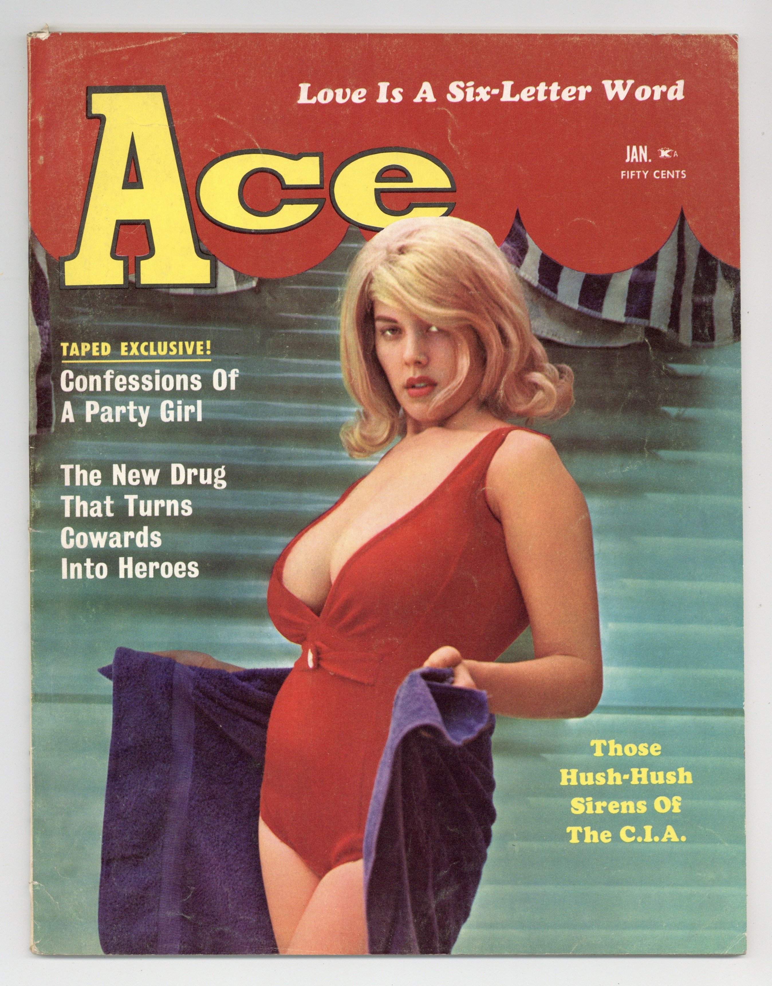 Vintage men's interest entertainment magazine that contains articles of interest for bachelors, humorous adult themed comic strips, short fiction stories, and nude pin-up photography. 8.5" x 11", 72 pages, mostly B&W with some color pages. -MATURE READERS-