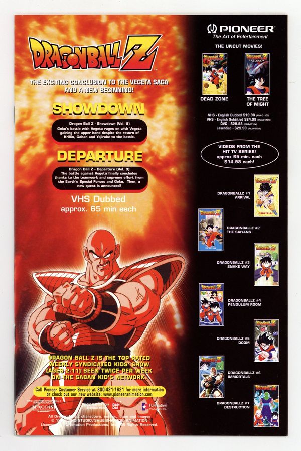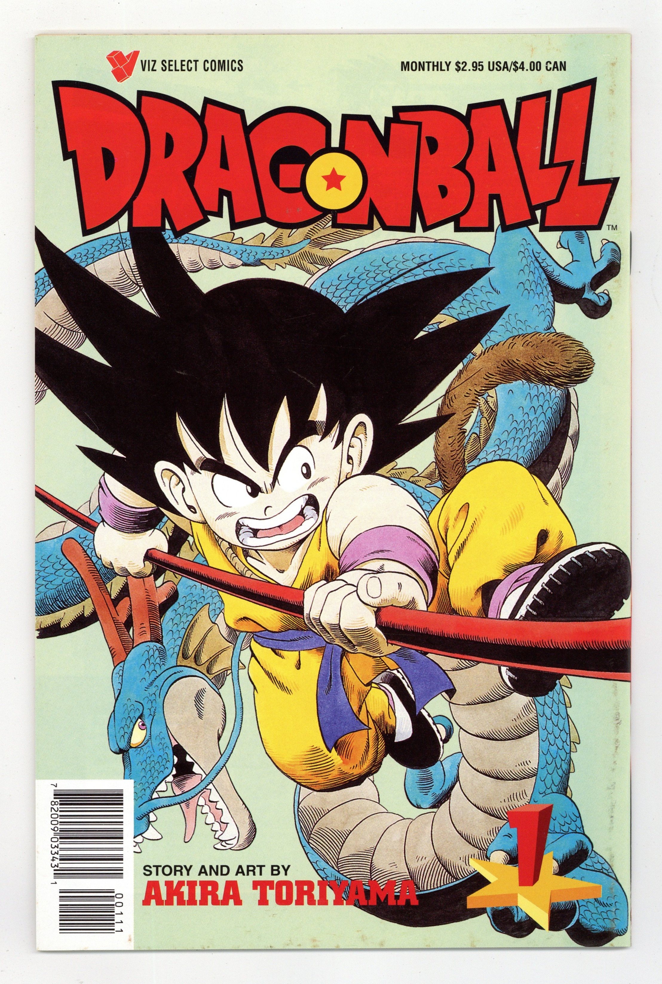 Tags: MangaPublished Apr 1998 by Viz Media LLC.$135.001st printing. Story and Art by Akira Toriyama. The most popular manga in the world finally comes to America! Printed right to left like authentic Japanese manga! Meet a young monkey-tailed boy named Goku, whose quiet life changes when he meets a girl named Bulma, who is on a quest to collect seven 'Dragon Balls.' If she gathers them all, an incredibly powerful dragon will appear and grant her one wish. But the precious orbs are scattered all over the world. Could Bulma use the help of a certain super-strong boy? 32 pages, B&W. Cover price $2.95.