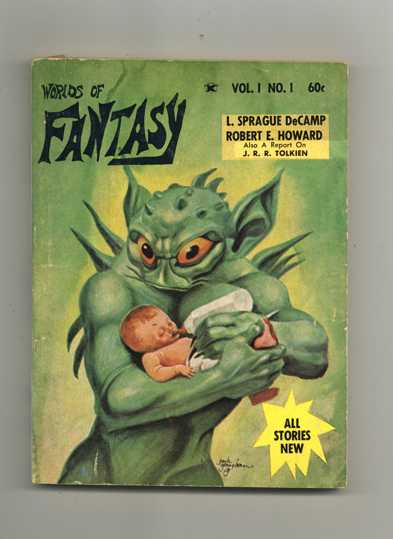Published Mar 1968 by Galaxy Publishing.$37.00Vol. 1 #1 - 1968. Cover by Jack Gaughan. All interior art by Gaughan. Fantasy Stories: "Conan and the Cenotaph" by Lin Carter and L. Sprague De Camp, "What the Vintners Buy" by Mack Reynolds, "Delenda Est" by Robert E. Howard, "As Is" by Robert Silverberg, "The Mirror of Wizardry" by John Jakes, "However" by Robert Lory, "The Man Who Liked" by Robert Hoskins, "Death is a Lonely Place" by Bill Warren and "After Armageddon" by Paris Flammonde. All stories new, including the REH short story. Also Lester Del Rey on J.R.R. Tolkien. This first issue was a trial, quarterly for the next three issues. Pulp Digest, 5 1/4-in. x 7 1/2-in., 130 pages, black and white. Cover price $0.60.