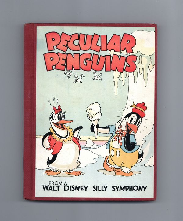 Published 1934 by David McKay Publishing.$86.00A Walt Disney Silly Symphony book, written and illustrated by staff of Walt Disney Studio. Publisher's full red cloth with illustrated label affixed to front board. Hardcover, 6.5" x 8", 48 pages, full color.