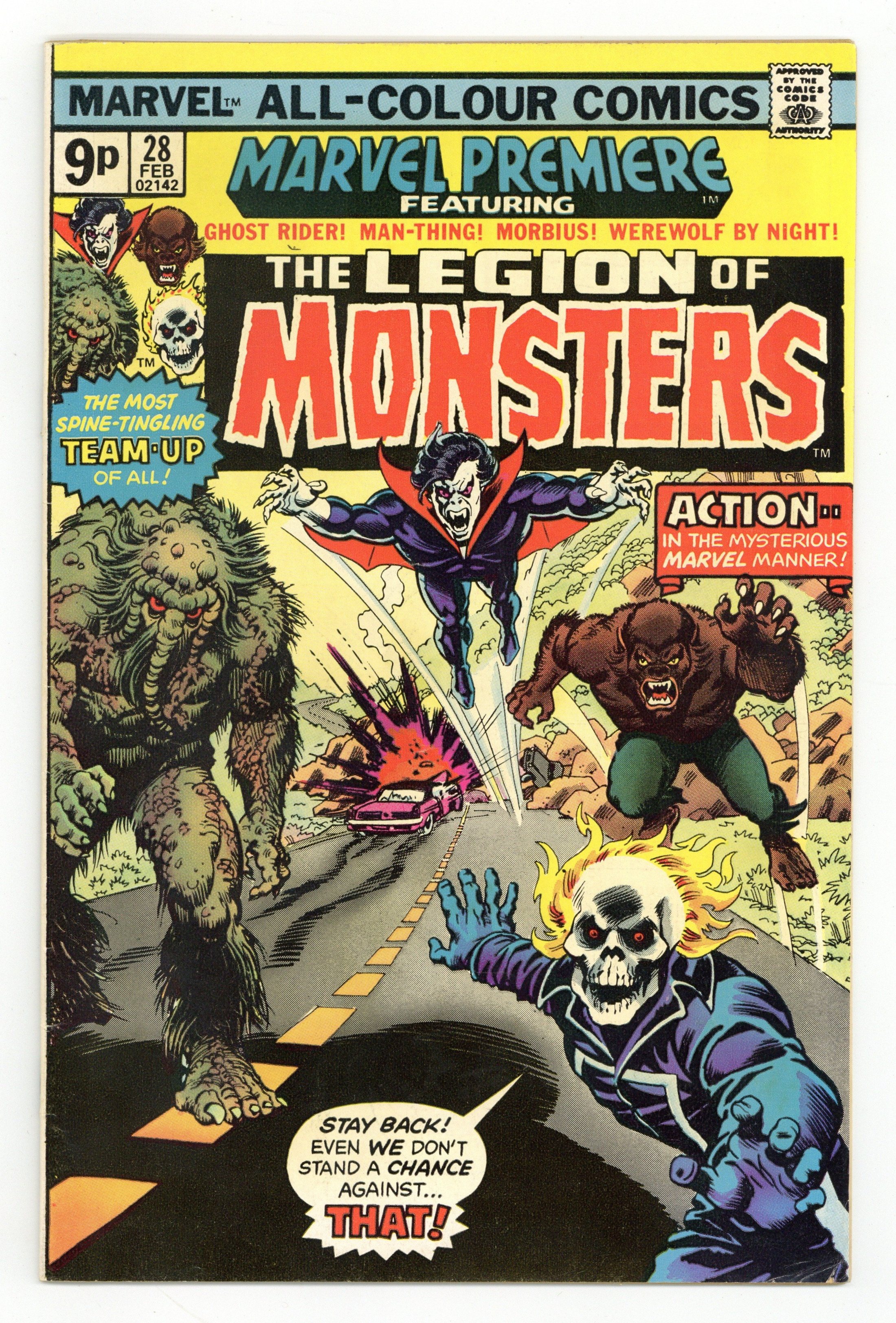 UK edition. Identical to US edition, but has 9p cover price. The Legion of Monsters - Starring Ghost Rider, Morbius, the Man-Thing, Werewolf by Night and Man-Thing - "There's a Mountain on Sunset Boulevard!" Written by Bill Mantlo. Art by Frank Robbins and Steve Gan. The mightiest monsters of the Marvel Universe stand united! But can even their combined macabre might stand up to the supernatural power of the Starseed?! 32 pages, FC. NOTE: Letter to the editor from writer Frank Lovece.