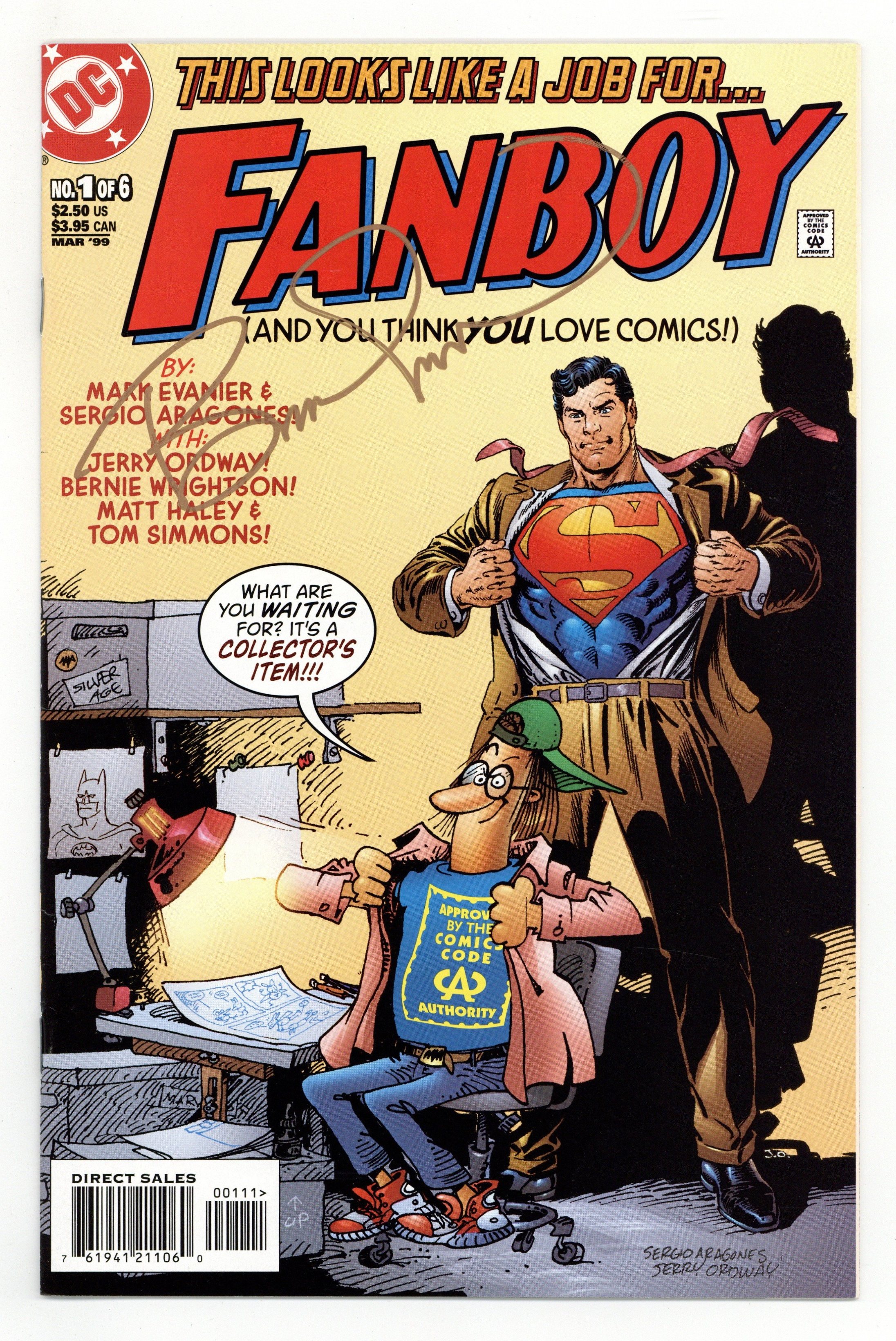 Finster pines for an unattainable girl, get some grief at the comic store he works at, then tries to save Earth when Superman becomes unavailable. By Mark Evanier & Sergio Aragones, with sequence art by Bernie Wrightson (inks for 2 pages), Jerry Ordway, Matt Haley & Tom Simmons. Cover by Ordway & Aragones. Cover price $2.50.