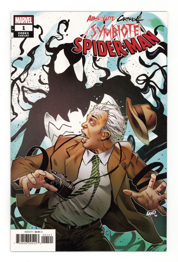 Tags: Absolute Carnage (part 3.06), Spider-Man$6.50Limited 1 for 25 Retailer Incentive Variant Cover. Written by Peter David. Art by Francesco Mobili. Cover by Greg Land. AN UNTOLD TALE OF A SYMBIOTIC HOST FROM YESTERYEAR...During its first visit to New York City, the alien symbiote that would come to be known as Venom bonded to a host that wasn't Spider-Man or Eddie Brock. Face front, True Believers, as this mysterious man meets his destiny... at the hands of CARNAGE! 36 pages, full color. Rated T Cover price $4.99.
