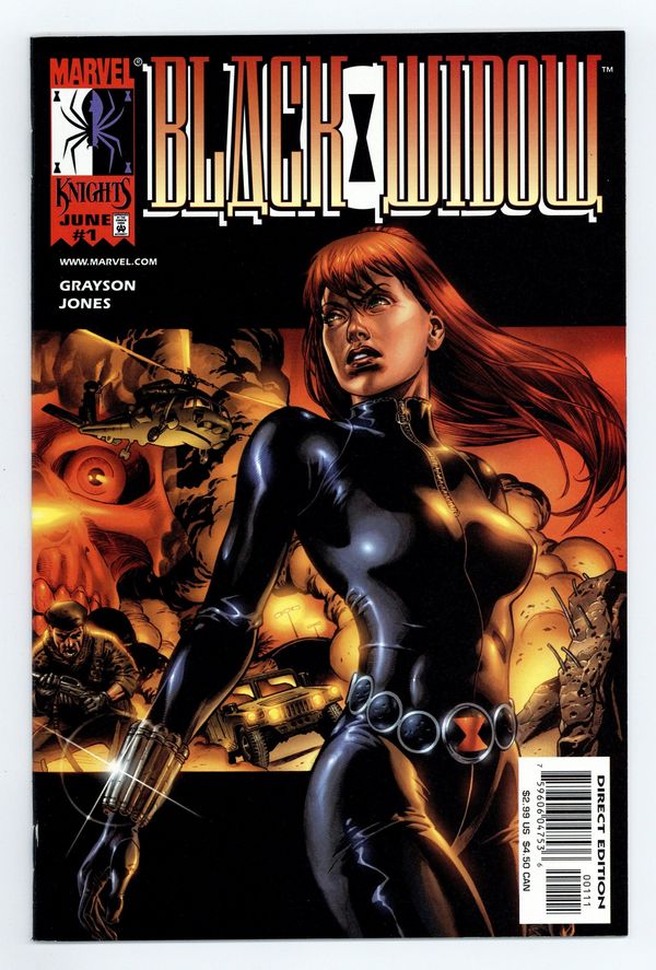 $55.00THE WARNING: The following analysis is for your eyes only and discusses the proposed elimination and replacement of Natasha Romanova, a.k.a. the Black Widow! THE TRANSMISSION: Data retrievement has uncovered the manufacture of an unstable variation of the "Super Soldier Serum" once used to empower Captain America. Satellite photographs locate chemical production facilities somewhere in the desert of Rhapistan. THE PENTAGON ASSESSMENT: Definite involvement of hard-line KGB agents targeting acquisition of Serum. Request immediate reactivation of Natasha Romanova, former Avenger and one-time spy. THE RISK FACTOR: New Black Widow Operative activated with priority one orders: terminate and replace Natasha Romanova. Written by Devin Grayson. Art and wraparound covers by J.G. Jones. Cover price $2.99.