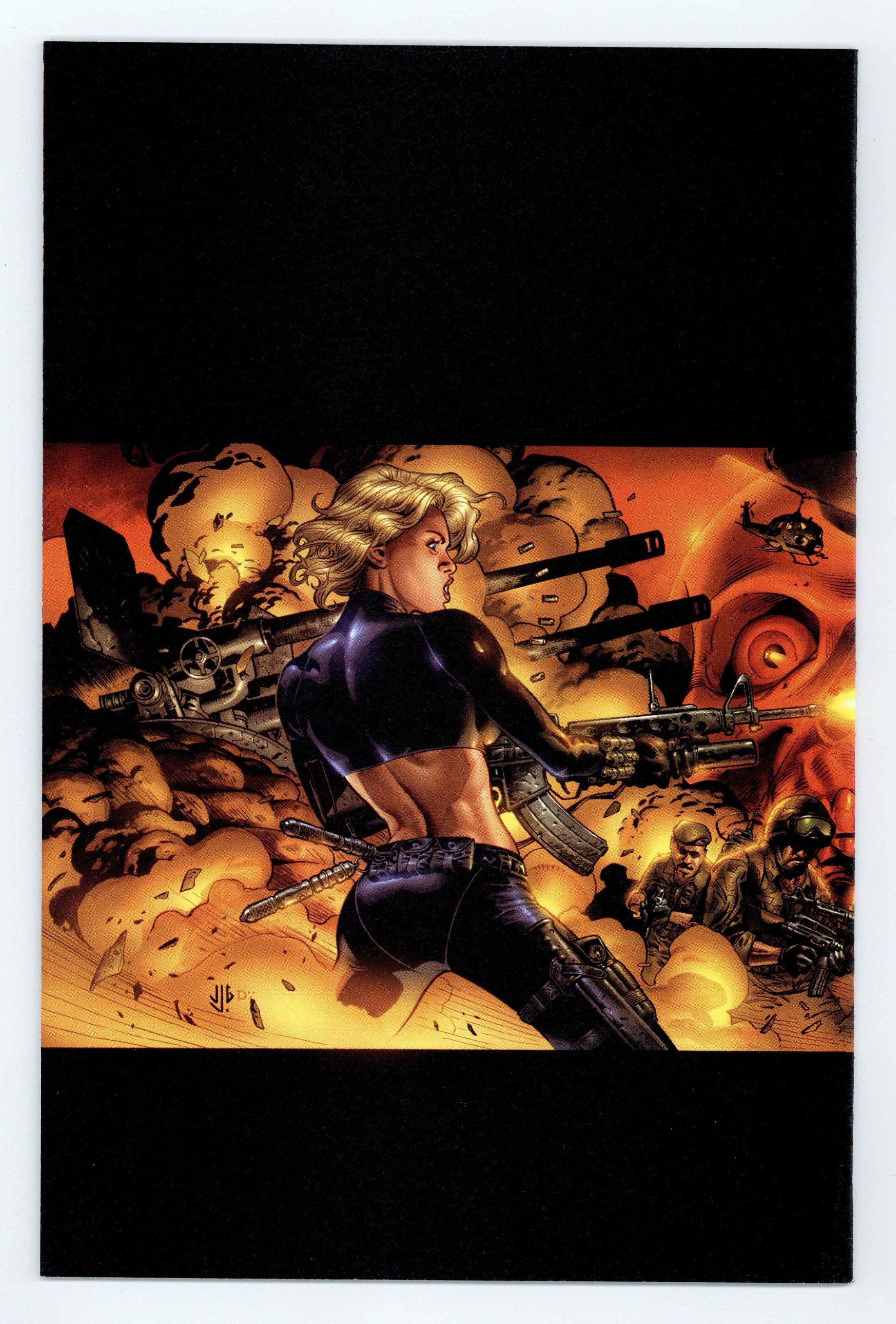 THE WARNING: The following analysis is for your eyes only and discusses the proposed elimination and replacement of Natasha Romanova, a.k.a. the Black Widow! THE TRANSMISSION: Data retrievement has uncovered the manufacture of an unstable variation of the "Super Soldier Serum" once used to empower Captain America. Satellite photographs locate chemical production facilities somewhere in the desert of Rhapistan. THE PENTAGON ASSESSMENT: Definite involvement of hard-line KGB agents targeting acquisition of Serum. Request immediate reactivation of Natasha Romanova, former Avenger and one-time spy. THE RISK FACTOR: New Black Widow Operative activated with priority one orders: terminate and replace Natasha Romanova. Written by Devin Grayson. Art and wraparound covers by J.G. Jones. Cover price $2.99.