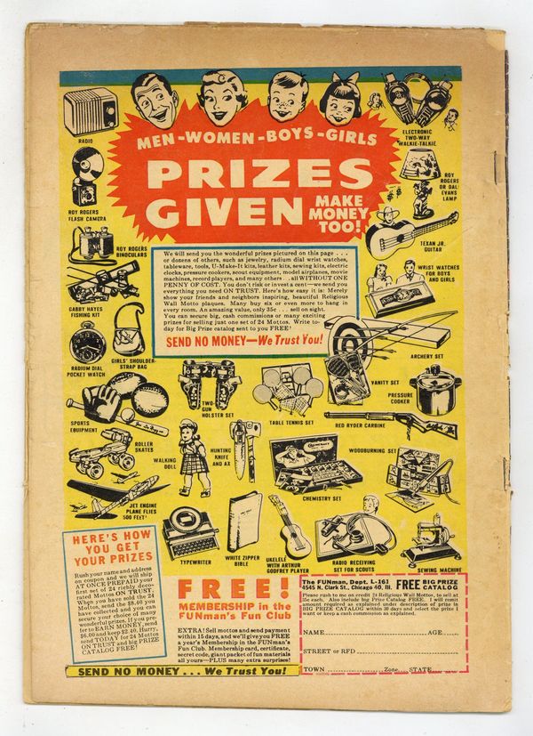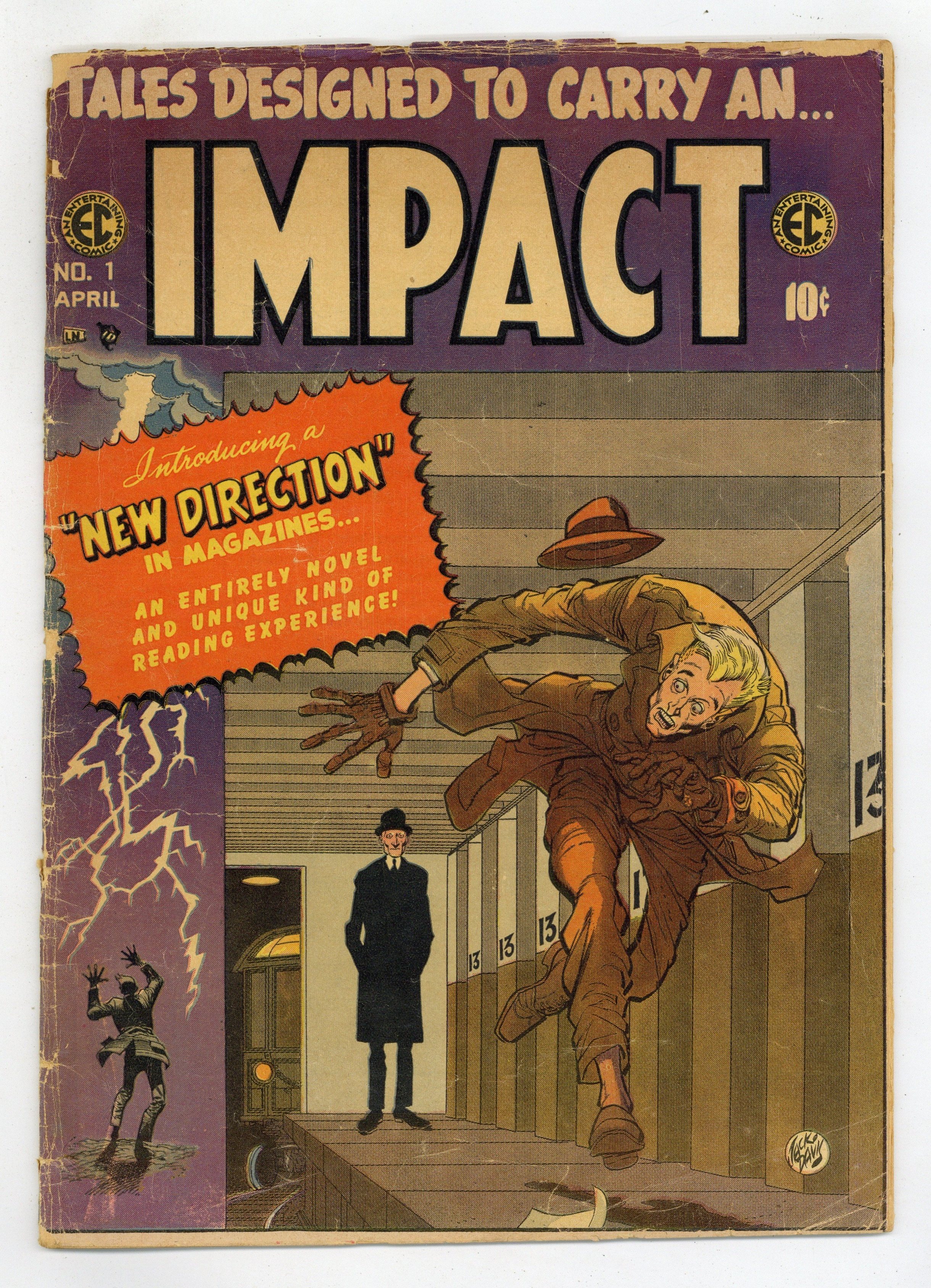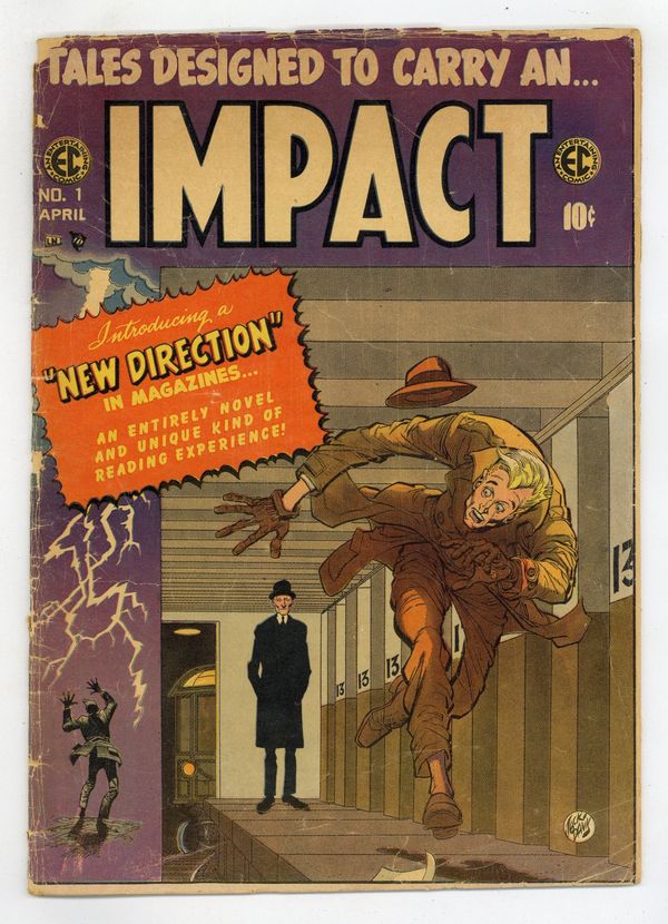 Charlton-printed variant with white title logo and inferior print quality. "Tough Cop" (script by Carl Wessler; art by Reed Crandall), "The Diamond Pendant" (script by Wessler; art by Graham Ingels; based on a story by Guy de Maupassant), "The Dress" (art by George Evans), and the classic story "Master Race" (script probably by Al Feldstein, art by Bernard Krigstein). Jack Davis cover (Illustrating "Master Race"). Cover price $0.10.