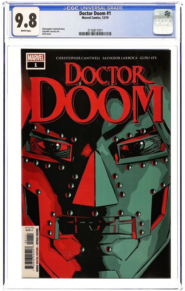 Written by Christopher Cantwell. Art by Salvador Larroca. Cover by Aco. THE CRACK OF DOOM! From Christopher Cantwell (HALT AND CATCH FIRE, SHE COULD FLY) comes a new monthly ongoing series… Victor Von Doom - scientist, sorcerer, disfigured face, twisted soul - has been spending much of his time warning against a trillion-dollar global effort to create the first 'artificial' black hole. Wrestling with visions of an entirely different life…a better future…DOCTOR DOOM finds himself at a crossroads. (what is he questioning?) A catastrophic act of terrorism kills thousands, and the prime suspect is… DOOM? Victor will have to push his unexplained thoughts aside and focus on remaining alive as the title of 'Most Wanted Man' is thrust upon him…. Left with no homeland, no armies, no allies, indeed, nothing at all, will the reign of Doctor Doom come to an abrupt halt? 44 pages, full color. Rated T Cover price $4.99.