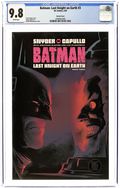 Written by Scott Snyder. Art by Greg Capullo and Jonathan Glapion. Cover by Rafael Albuquerque. Gotham City has been remade. Omega reigns supreme. Can Batman finally accomplish what no other hero has and free the world from his dark reflection's shadow? Or is it too late for the recreated Caped Crusader? 56 pages, full color. Mature Readers Cover price $5.99.
