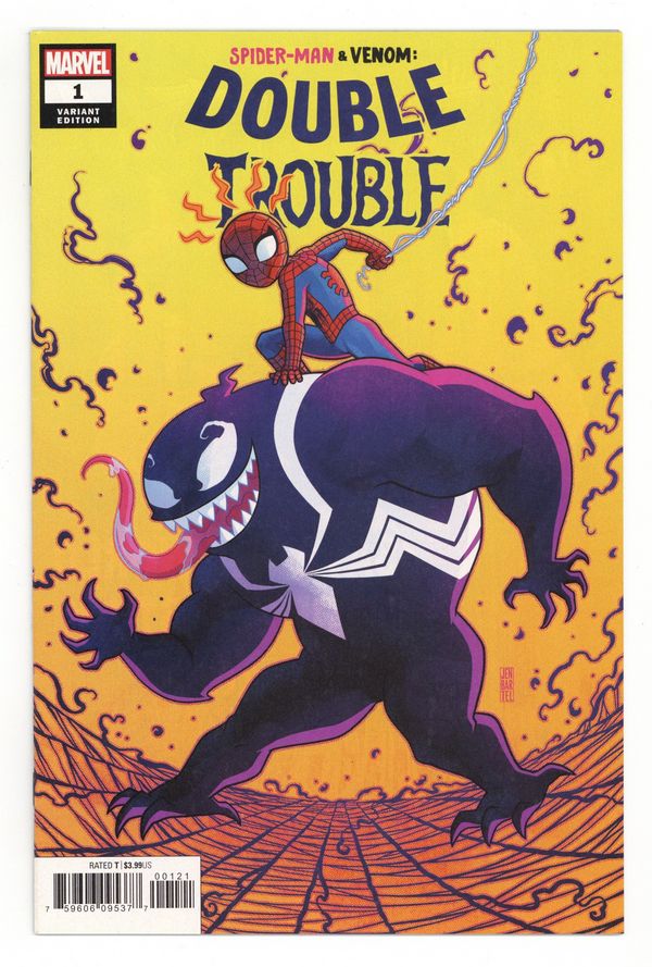 Tags: Spider-Man$17.00Limited 1 for 50 Retailer Incentive Variant Cover. Written by Mariko Tamaki. Art by Gurihiru. Cover by Jen Bartel. You've seen 'em duke it out in the Marvel Universe for years, but prepare to see Spidey and Venom as you never have before: as begrudging… buddies? It's fun of the freaky variety this time around, as an unexpected mind-swap sets Spidey and Venom in each other's bodies! But WHO swapped them, and why?! From Mariko Tamaki and Gurihiru comes an all-new take on your favorite arch-Frienemies in the MU - and now they've gotta work together to set things right! 28 pages, full color. Rated T Cover price $3.99.