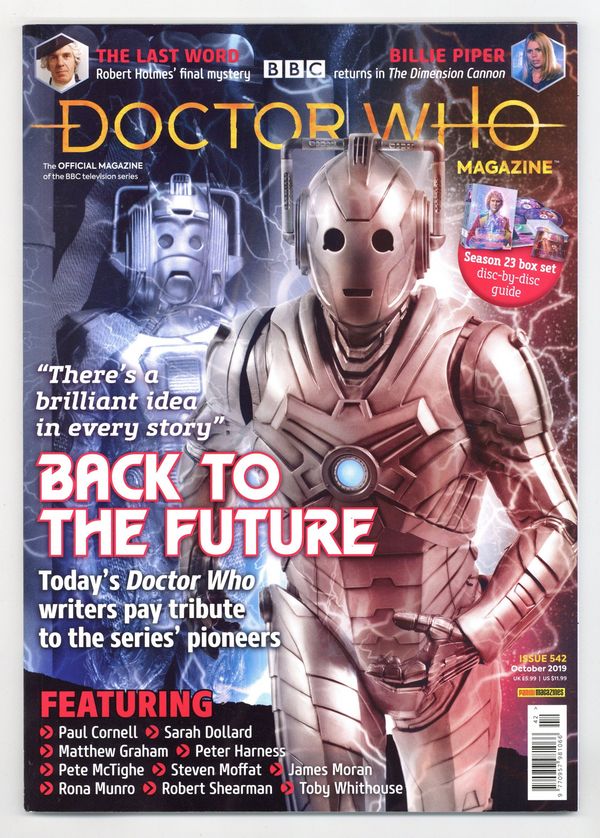 This issue looks forward to what's coming up in the world of Doctor Who in 2019. It's packed with all-new content including revealing interviews, behind-the-scenes info and unique insights into the world's longest-running science-fiction program. The magazine also celebrates the best of Doctor Who's past with a compelling mix of articles and rare images. In this issue: Today's Doctor Who writers pay tribute to the series' pioneers - featuring exclusive contributions from Paul Cornell, Sarah Dollard, Matthew Graham, Peter Harness, Pete McTighe, Steven Moffat, James Moran, Rona Munro, Robert Shearman and Toby Whithouse; exclusive interviews with Billie Piper and Camille Coduri ahead of Big Finish's new audio series Rose Tyler: The Dimension Cannon; The Robots of Ravolox - investigating Robert Holmes' final mystery; Bonnie Langford answers questions from the TARDIS tin; 1980's script editor Eric Saward reflects on the troubled production of The Trial of a Time Lord; The Trial of a Time Lord on trial - could it be Doctor Who's most underrated story?; The Fact of Fiction explores the 2008 Tenth Doctor story Planet of the Ood; an exclusive preview of Doctor Who: The Collection - Season 23; Part 3 of Power of the Mobox, a new comic-strip adventure featuring the Thirteenth Doctor and her friends; The Blogs of Doom, audio reviews, previews, news, prize-winning competitions and much, much more! 84 pages, full color. Cover price $11.99.