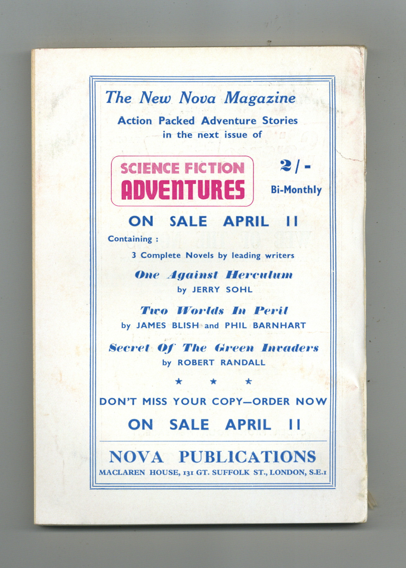Tags: UK EditionsPublished Apr 1958 by Nova Publications.$4.80- Front cover detached 30%.