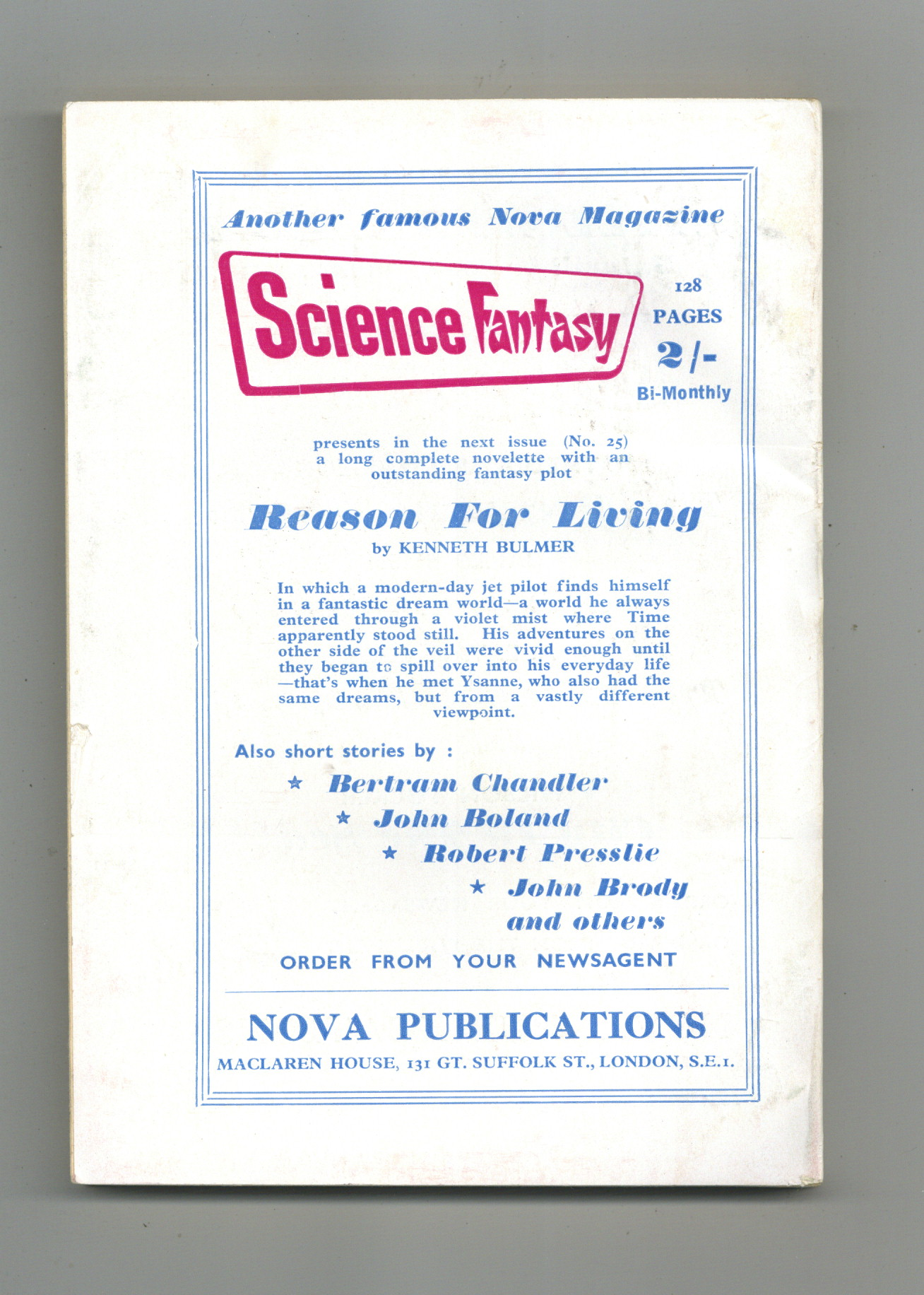 Published Sep 1957 by Nova Publications.$2.65- Front cover detached 5%. Staple rust: Slight.