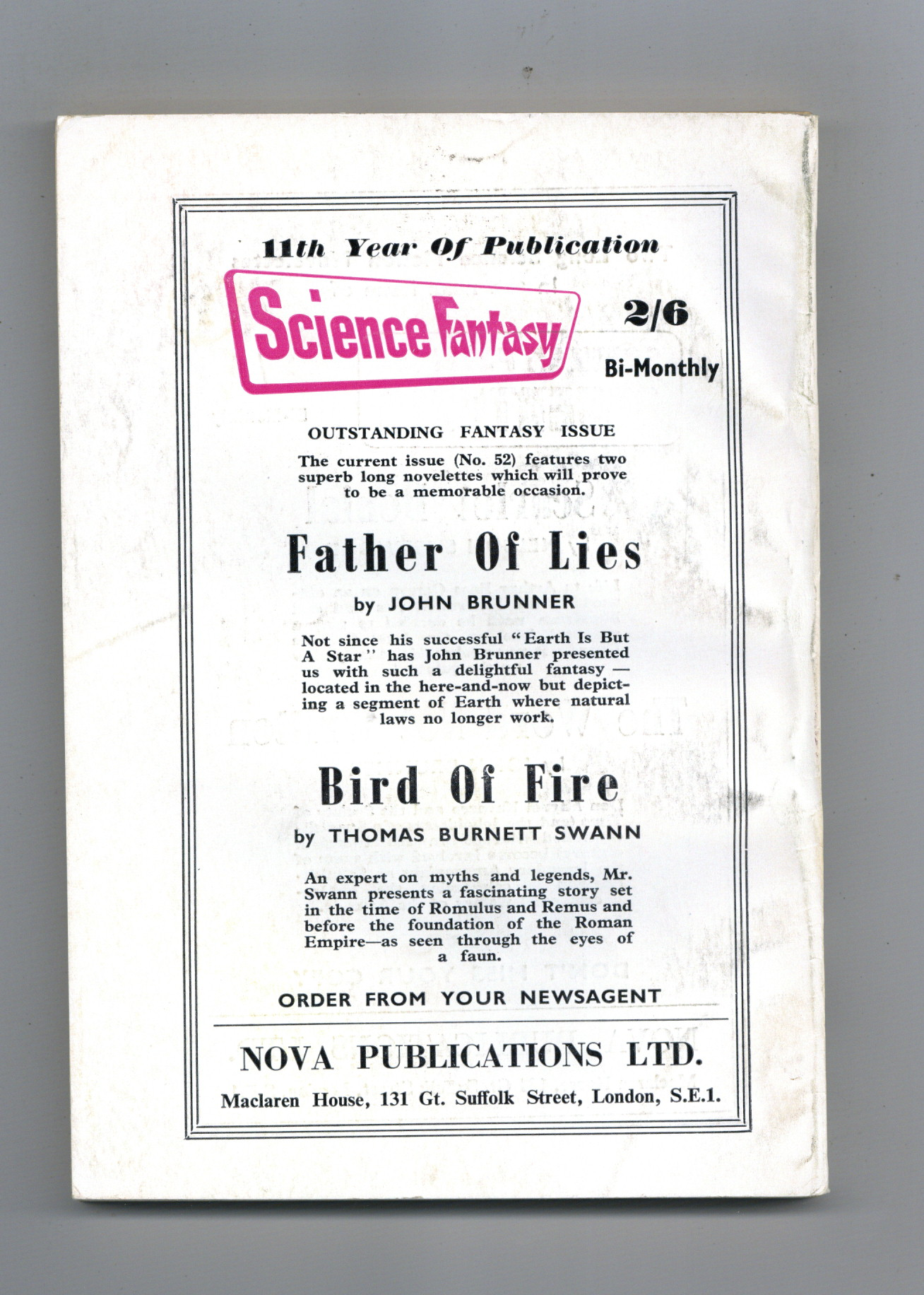 Published Apr 1962 by Nova Publications.$2.50- 3/4" Spine split from top. Water damage.