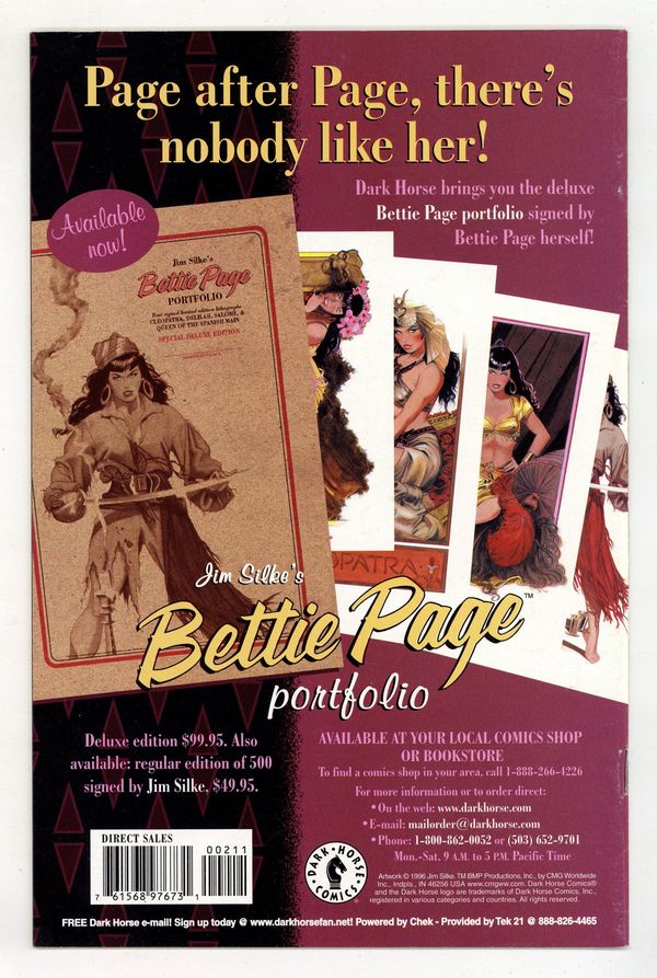 Published Feb 2000 by Dark Horse.$63.00by Jim Silke; cover by Dave Stevens Whoops! This time, Bettie is the one falling in love. She runs smack into the Roman general, Julius Caesar, and is overcome by his animal magnetism. But there's a problem: Cleopatra has a serious "thing" for Caesar. And he can't decide between the two of them. So the two nubile lovelies battle it out to become "The Queen of the Nile"! On sale February 2 FC, 24pg (2 of 3)" Cover price $2.95.