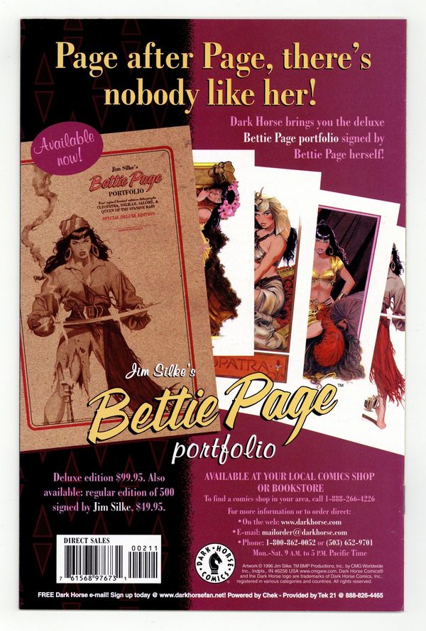 Published Feb 2000 by Dark Horse.$85.00by Jim Silke; cover by Dave Stevens Whoops! This time, Bettie is the one falling in love. She runs smack into the Roman general, Julius Caesar, and is overcome by his animal magnetism. But there's a problem: Cleopatra has a serious "thing" for Caesar. And he can't decide between the two of them. So the two nubile lovelies battle it out to become "The Queen of the Nile"! On sale February 2 FC, 24pg (2 of 3)" Cover price $2.95.