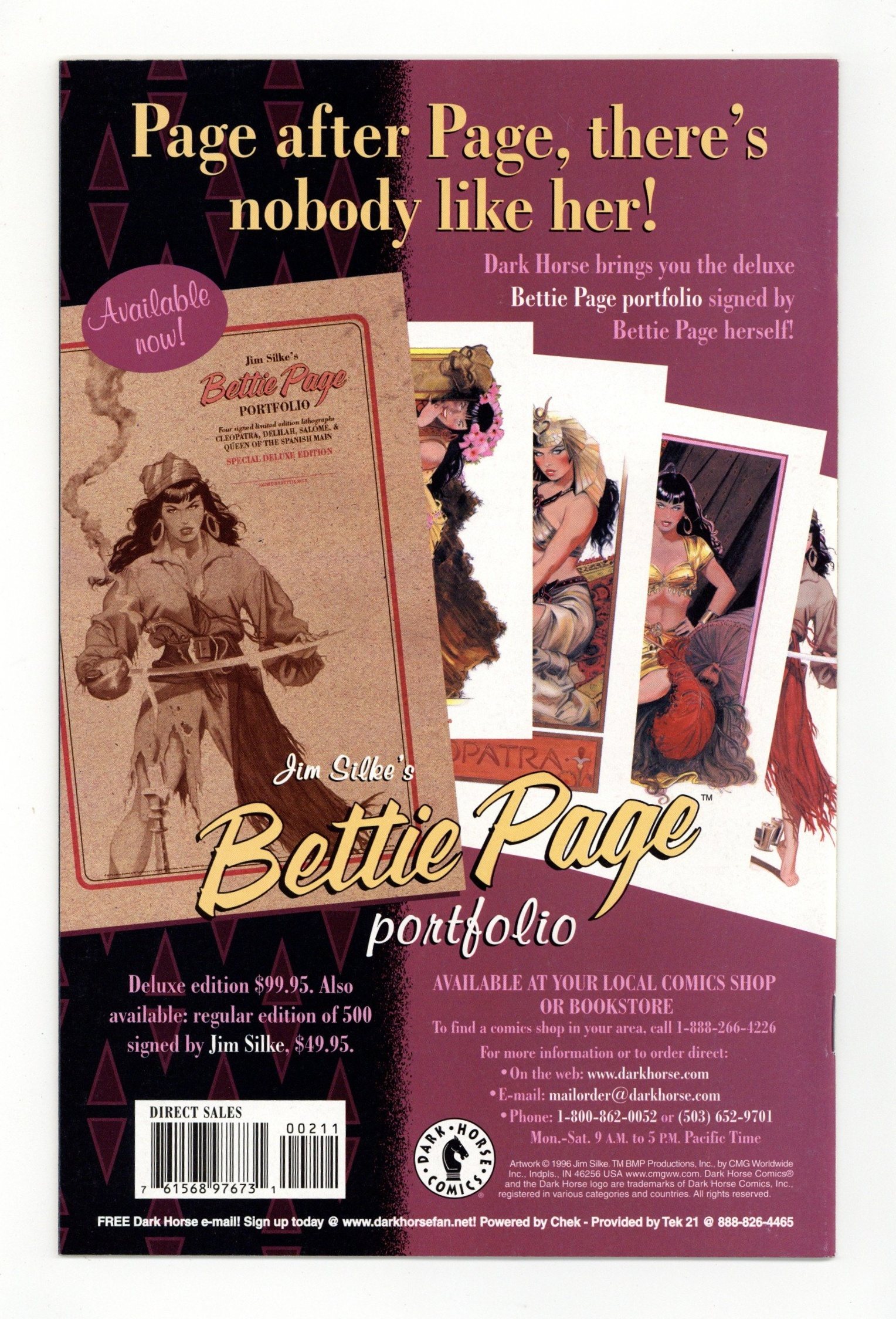 Published Feb 2000 by Dark Horse.$57.00by Jim Silke; cover by Dave Stevens Whoops! This time, Bettie is the one falling in love. She runs smack into the Roman general, Julius Caesar, and is overcome by his animal magnetism. But there's a problem: Cleopatra has a serious "thing" for Caesar. And he can't decide between the two of them. So the two nubile lovelies battle it out to become "The Queen of the Nile"! On sale February 2 FC, 24pg (2 of 3)" Cover price $2.95.