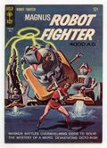 $21.00Painted cover art by George Wilson. "The Mysterious Octo-Rob," script by Russ Manning and Don Christensen, art by Russ Manning; Magnus battles overwhelming odds to solve the mystery of a weird, devastating Octo-Rob. "Creatures from Saturn" text story. A Robot Gallery that includes a sketch of a robot invention by a very young Walter Simonson. "Fear of the Unknown," script by Robert Schaefer and Eric Freiwald, art by Russ Manning; Zarz landed the ship after humans passed out, but now the hypatomic engines rupture; Zarz orders "Every Earthman must be outside before any of us leave the ship!" But the rescuers freak at the aliens, and soldiers open fire as the ship burns. # on cover 10046-505. May. #10 5/65. 36 pgs., full color. Cover price $0.12.