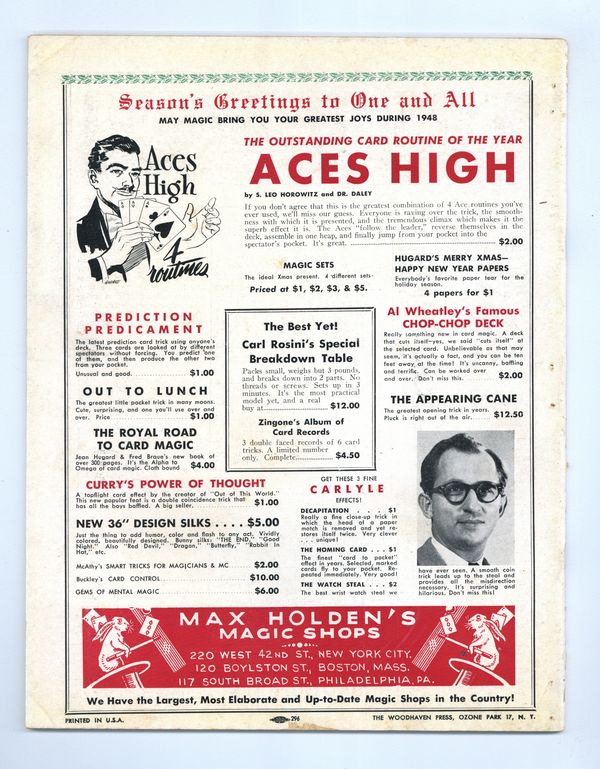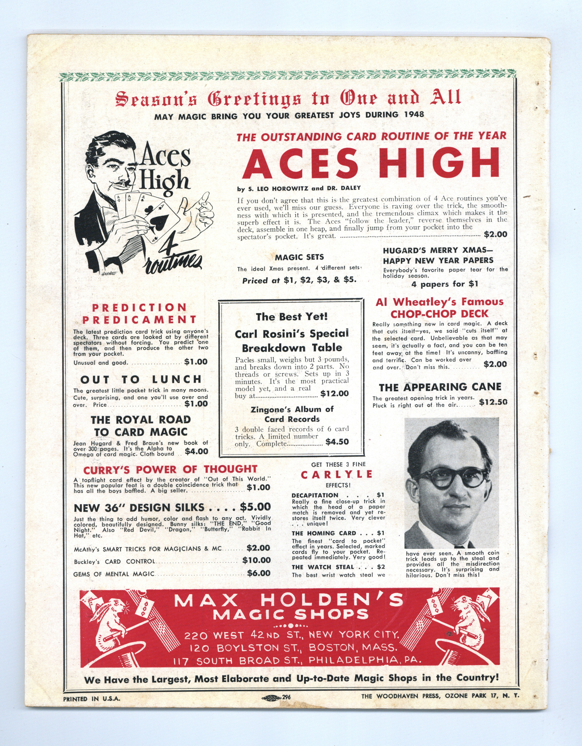 Published Dec 1947 by Conjurors' Press.$2.50- Centerfold plus two wraps detached. Staple rust.
