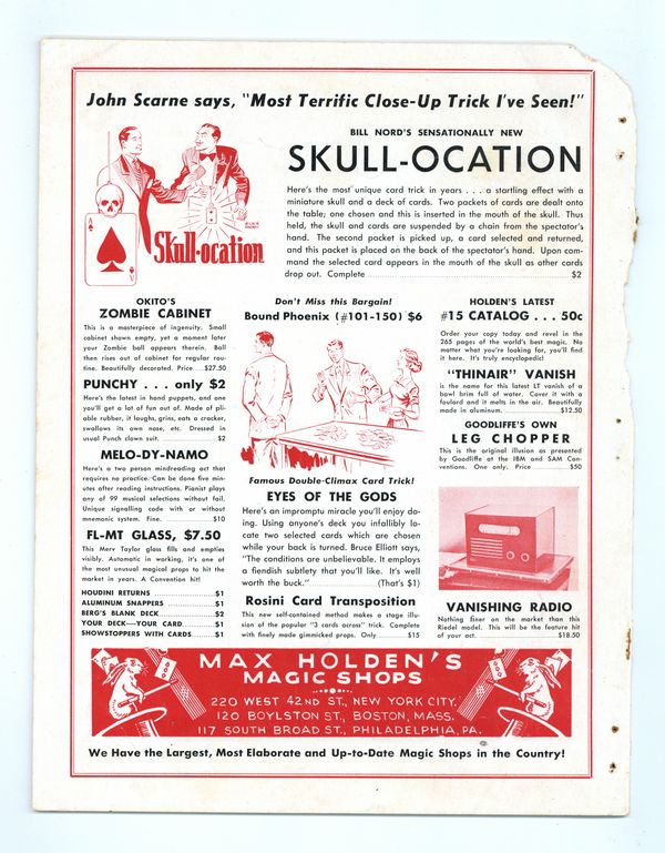 Published Aug 1948 by Conjurors' Press.$8.00- Spine split 50%. Staple rust: Moderate.