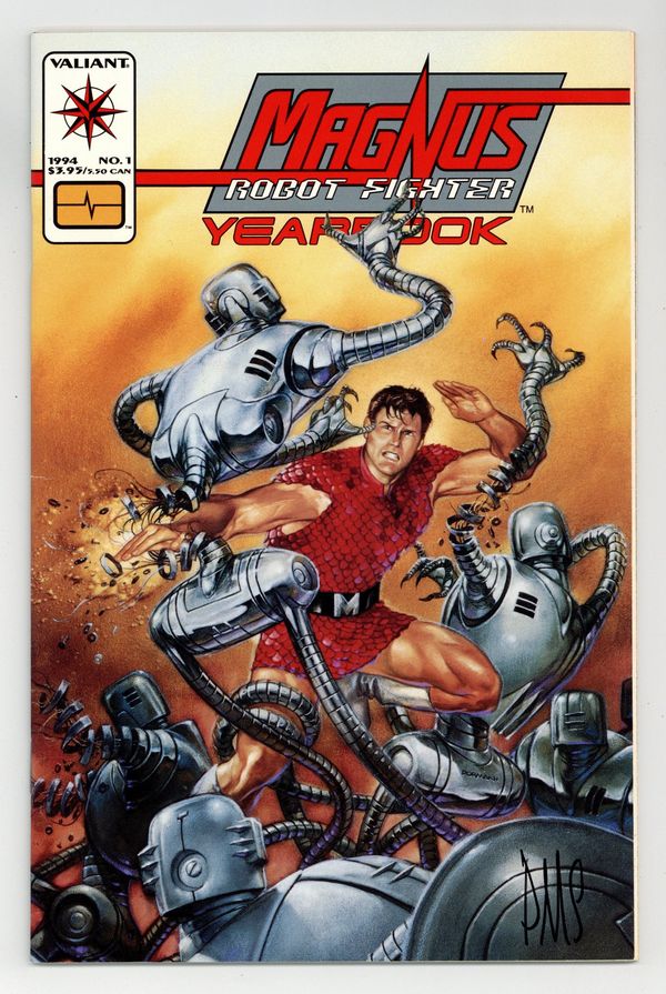 Magnus' message that humans are depending too much on robots is met with opposition led by Senator Urquhart who is working with Ivan Boesker who has some new model robots to help with his evil plans in "Past Imperfect. Script by Mike Baron and art by Paul Smith. Cover painting by Dave Dorman. Cover price $3.95.