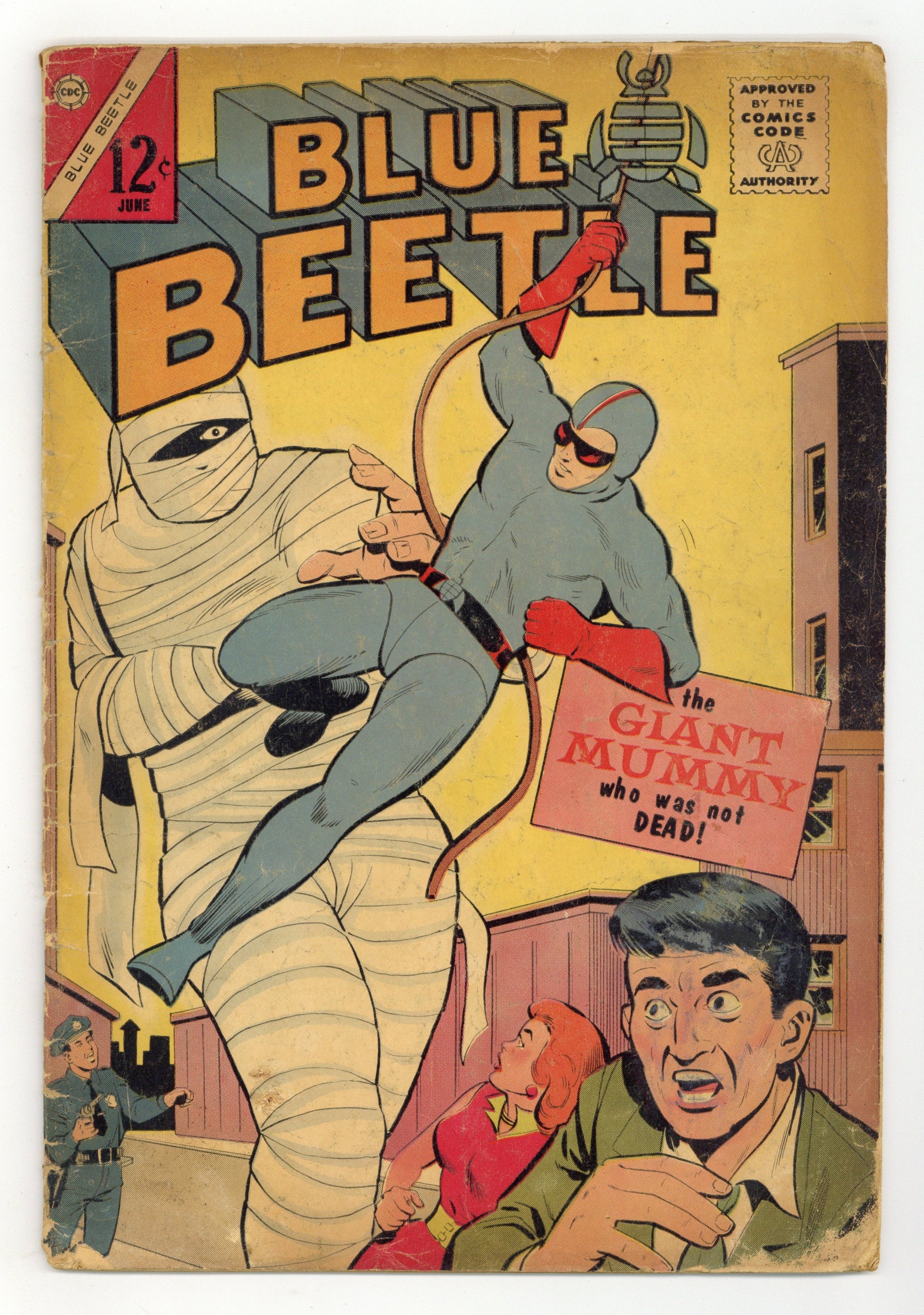 Cover by Bill Fraccio and Frank McLaughlin. Stories and art by Joe Gill, Bill Fraccio and Tony Tallarico. The second Charlton series to feature Dan Garrett, the Golden Age Blue Beetle, is also the first to contain original material. This issue is also notable as Charlton's first entry into the superhero genre in the Silver Age. Dan Garrett, the Golden Age Blue Beetle, battles an ancient mummy. An injured police officer needs an artificial heart to survive, in a story that predates the actual artificial heart by a decade or two. Plus fun facts about the duckbill platypus, a "fun" animal if there ever was one. The Giant Mummy Who Was Not Dead; Jungle Waters; Freaks of Nature; Have a Heart; Record of the Rocks. 36 pages, Full Color. Cover price $0.12.