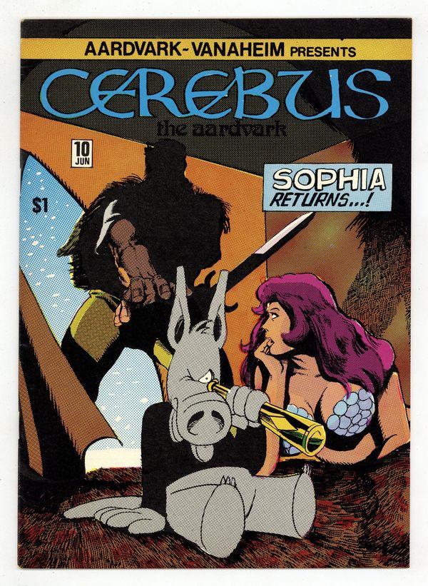 Published Jun 1979 by Aardvark-Vanaheim.$30.00Merchant of Unshib. Red Sonja spoof Red Sophia returns, and ropes Cerebus into her scheme to retrieve a magical flower. Story, art and cover by Dave Sim. Letters page includes a small sketch of Cerebus by Marshall Rogers. Black and white; 24 pages. Cover price $1.00. Cover price $1.00.