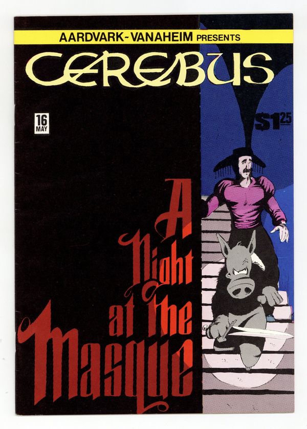 A Night at the Masque. Cerebus deals with rebel assassins and jewel thieves during the party under Palnu; hes ready to leave the city for good when Julius reveals his relationship to Jaka. Story, art and cover by Dave Sim. Black and white; 24 pages. Cover price $1.25.