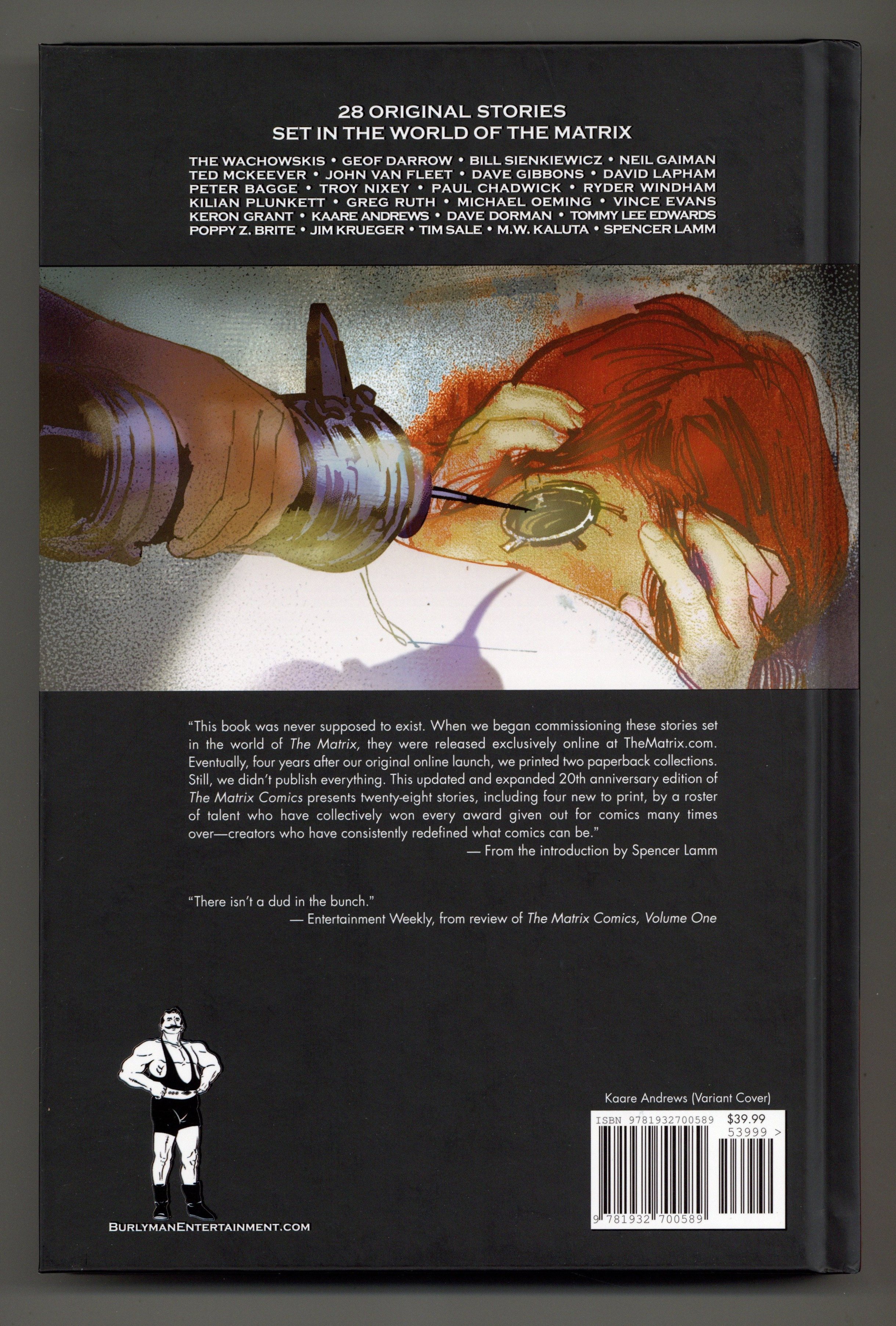 Written by Lana Wachowski, Lilly Wachowski, Geof Darrow, Neil Gaiman, Bill Sienkiewicz, Ted McKeever, John Van Fleet, Dave Gibbons, Troy Nixey, Peter Bagge, David Lapham, Paul Chadwick, Ryder Windham, Tommy Lee Edwards, Jim Krueger, Poppy Z. Brite, Spencer Lamm, Vince Evans, Kaare Andrews, and Greg Ruth.