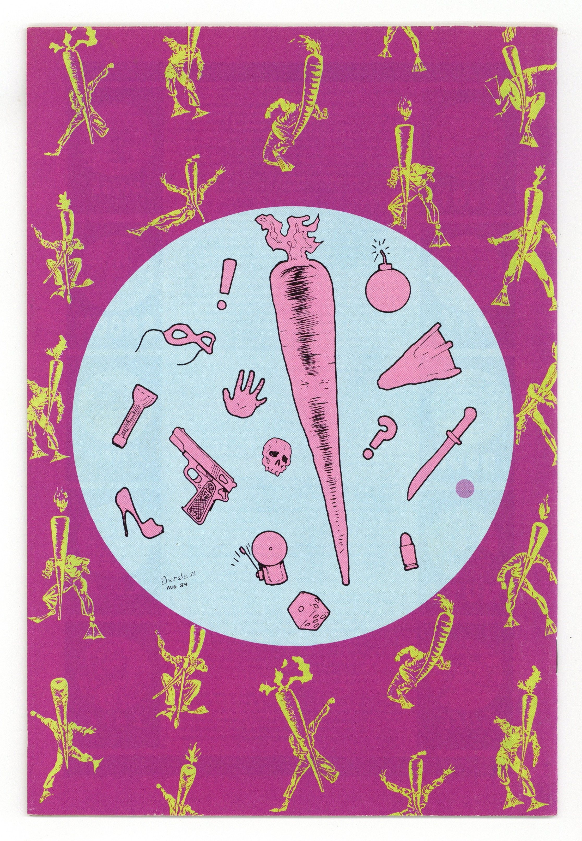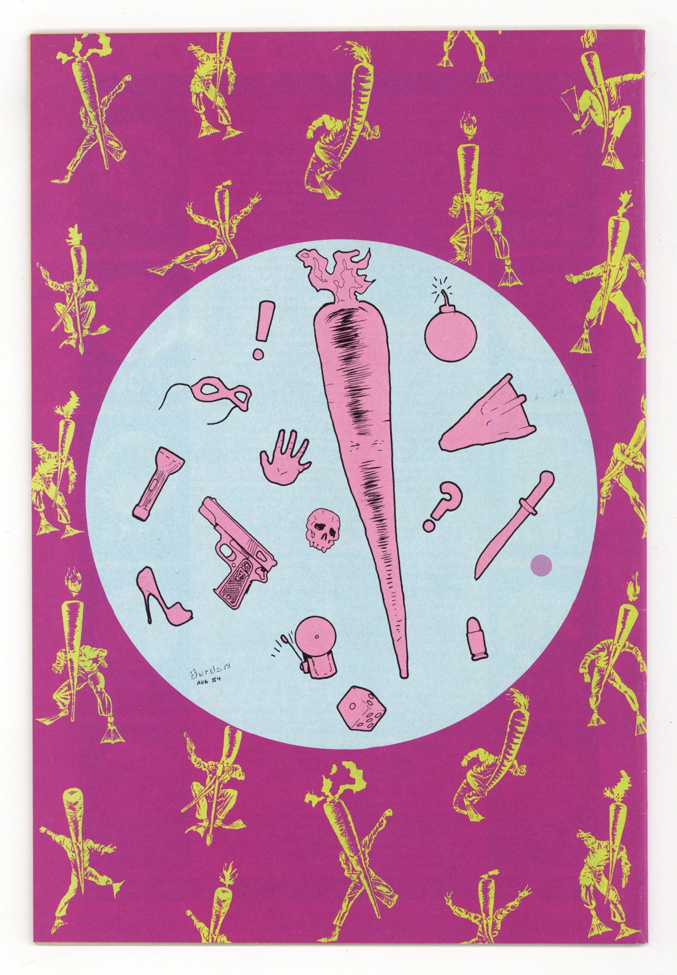 Published Sep 1984 by AV/Dark Horse.$20.00Cover art by Bob Burden. Flaming Carrot and His World, script and art by Bob Burden; origin recapped. Flaming Carrot Meets the Artless Dodger, script and art by Bob Burden; The Artless Dodger causes mass destruction and murders people to steal worthless items. Chronicling the hilarious adventures of Bob Burden's post-Dada, neo-surrealist super-hero. 36 pgs. $1.70. Cover price $2.00.