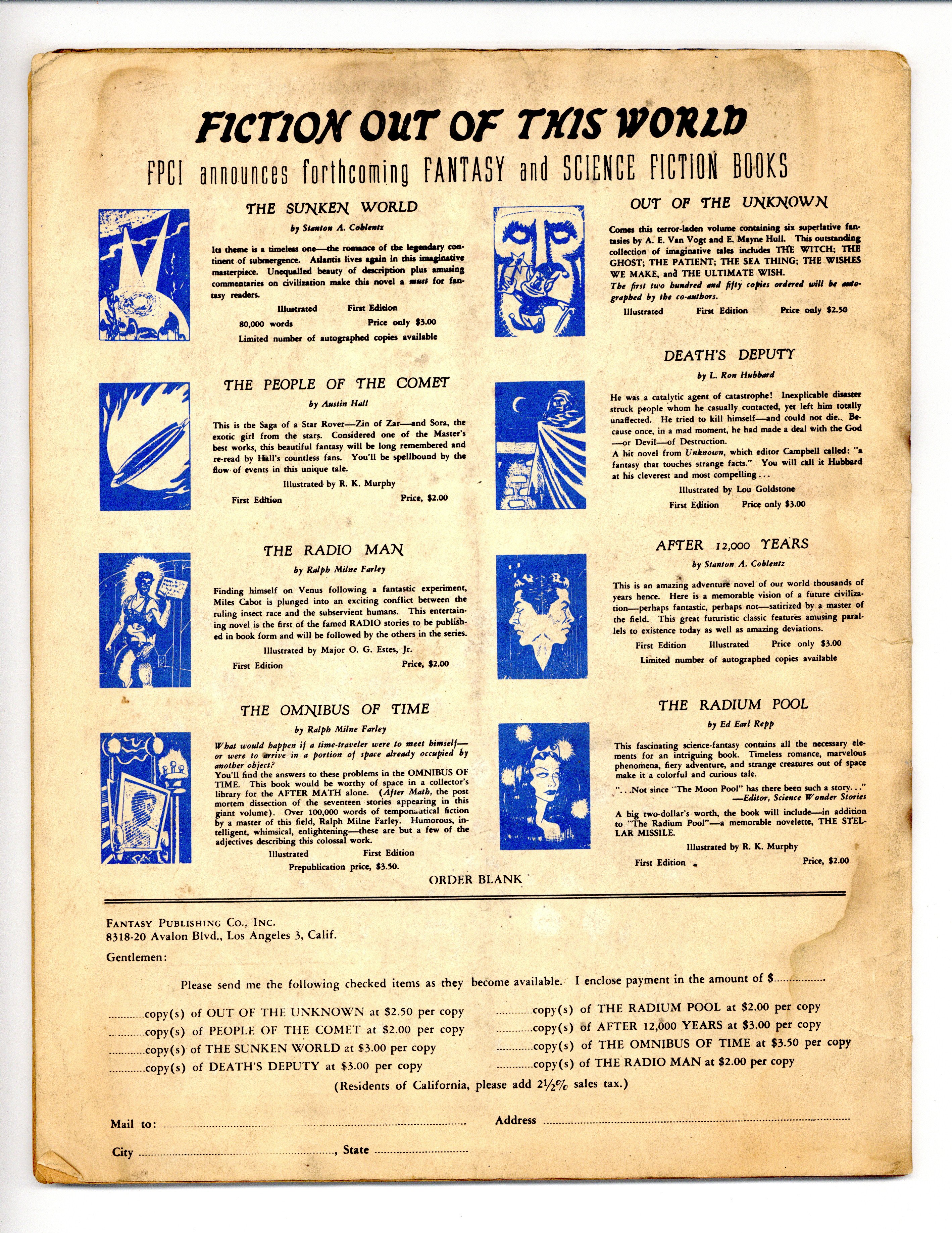 Published 1948 by FPCI, Los Angeles.$27.00- Water damage: Moderate. Staple rust: Extensive.