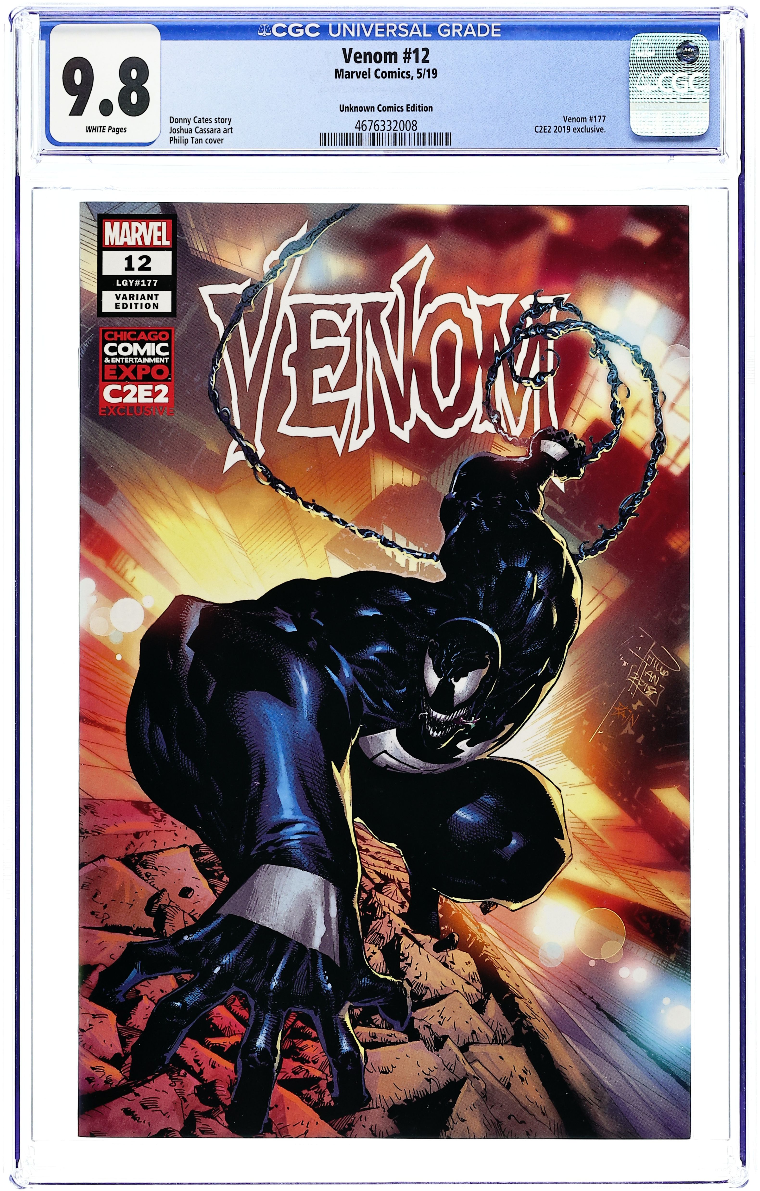 C2E2/Unknown Comics exclusive variant by Philip Tan. Written by Donny Cates. Art by Joshua Cassara. Once the worst nightmare of New York's criminal element, Eddie Brock has been living a nightmare of his own, cut off from the symbiote's personality and now dealing with the resurgence of the cancer that once ravaged his body. With no one else to turn to, Eddie must revisit THE MAKER - the only person who's been able to provide ANY insight into what's been going on with the alien symbiote of late... 28 pages, full color. Rated T+