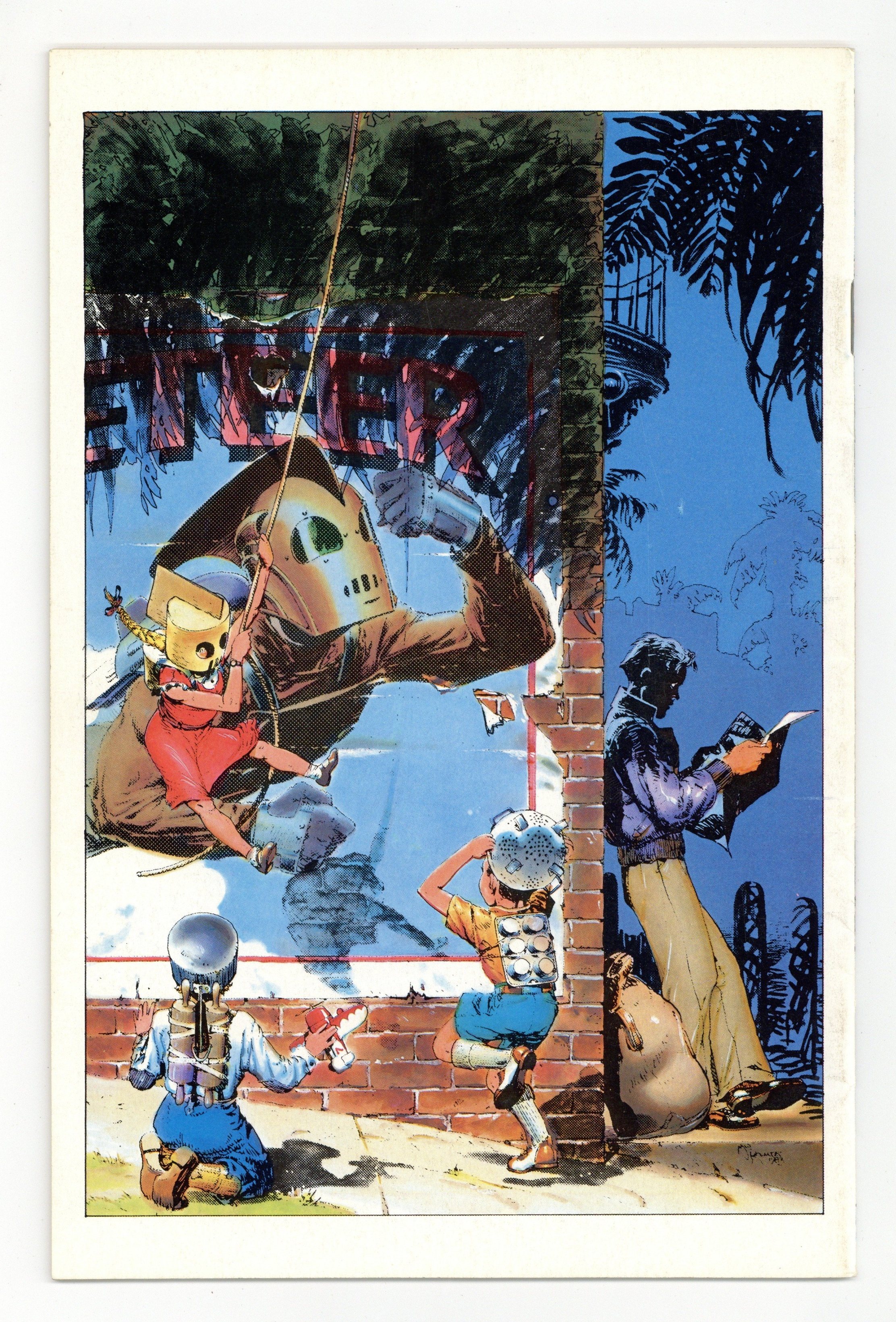 Cover, story and art by Dave Stevens. "Chapter 5" 20 pages. Part 5 of 8. Story continues from Pacific Presents #2. Cliff Secord teams up with the inventor of his jet pack to stop enemy agents from stealing "The Locust", an experimental plane. If he survives, he will still have to escape the inventor and his agents if he wants to prevent Betty from flying to Europe with slimy photographer Marco. Story continues in Rocketeer Adventure Magazine #1. Issue includes pin ups by Gray Morrow, Doug Wildey, Murphy Anderson, George Freeman, William Stout, Russ Heath, Al Williamson, Bruce Jones and Mike Kaluta. 32 pages. Full color. Cover price $1.50.