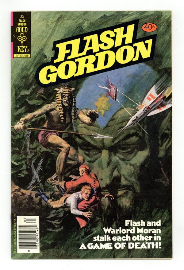 Published May 1979 by King/Whitman.$7.90Stories by John Warner. Art by Carlos Garzon. The continuing adventures of Flash Gordon, Dale Arden and Dr. Zarkov on the planet Mongo. This issue features art by Carlos Garzon, longtime assistant to EC legend Al Williamson. On exploratory mission in Arboria, Flash and Dale are attacked by Warlord Moran. Captured by the Jaguar Men, Flash and Moran are forced to hunt each other through the forest. Dale is aided by the princess of the Jaguar Men, while Moran tries to win over the Jaguar Men to Ming's side. The Game of Death! 32 pages, full color. Cover price $0.40.