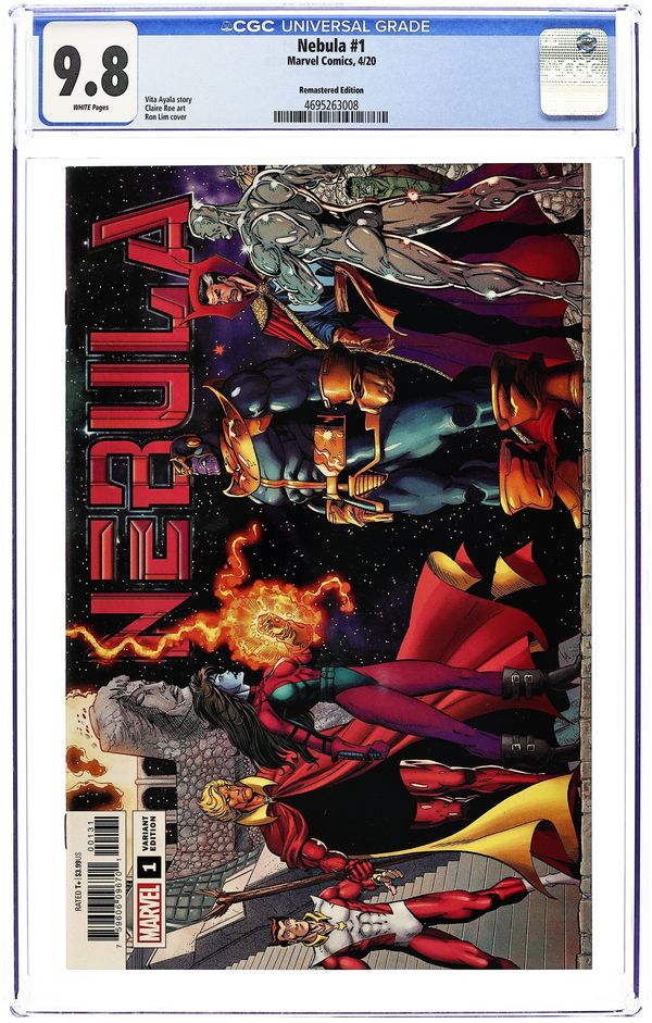 Limited 1 for 100 Retailer Incentive Variant Cover. Written by Vita Ayala. Art by Claire Roe. Cover by Ron Lim. Nebula has grown under the shadows of Thanos and Gamora, but no longer! With her eyes set on a top-secret device, Nebula has big plans for her future-and she's not about to let anyone get in her way! But her goal may end up costing her more than she's willing to pay after a showdown with one of the cosmos most feared bounty hunters….Don't miss out on this cosmically critical series launch from rising stars, Vita Ayala (PRISONER X) and Claire Roe (FEARLESS)! 28 pages, full color. Rated T+ Cover price $3.99.